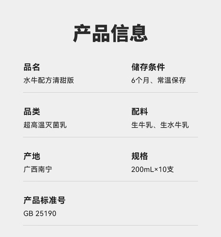 隔壁刘奶奶 水牛配方清甜奶200ml*10