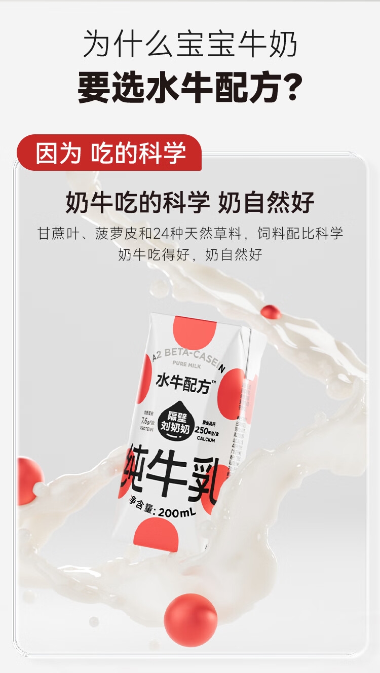 清甜顺滑好喝不腻;甘蔗叶、菠萝皮和24种天然草料;饲料配比科学奶牛吃得好,奶自然好