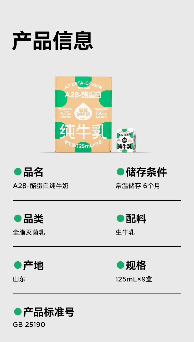 隔壁刘奶奶 A2β-酪蛋白125ml*9盒