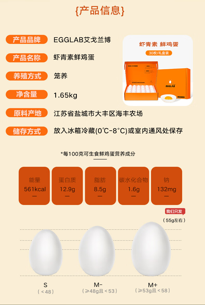 艾戈兰博 虾青素鲜鸡蛋30枚