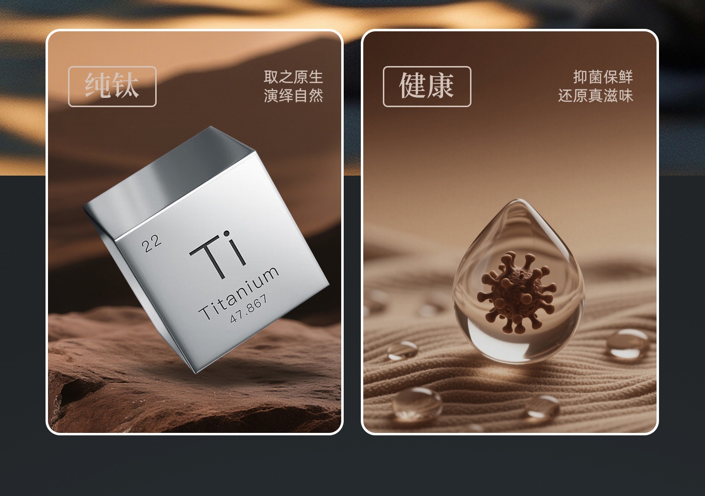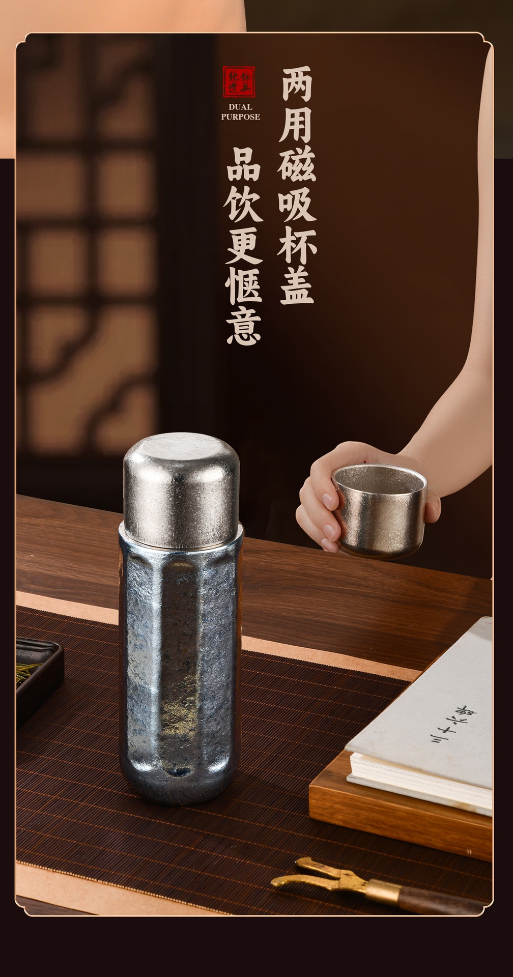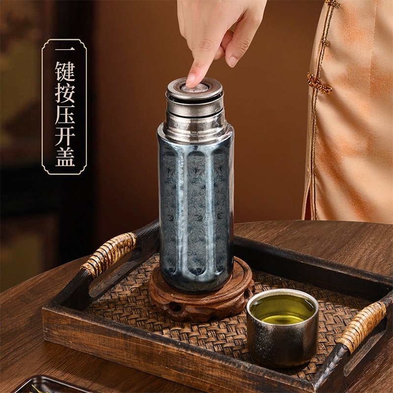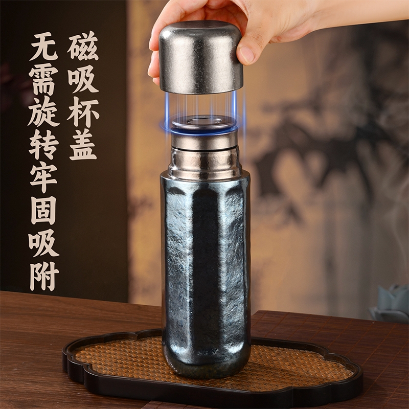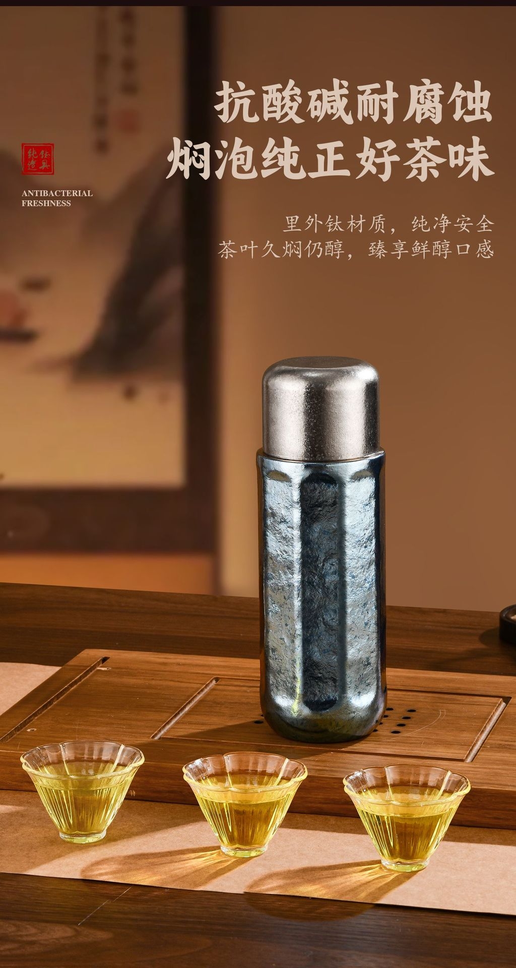 纯钛保鲜内胆,健康材质无重金属析出,饮水更健康;磁吸杯盖,无需旋转牢固吸附,外盖无螺纹,磁吸设计;机械显温水温看得见,利用表盘内部热胀冷缩原理驱动;抗酸碱耐腐蚀焖泡,纯正好茶味,里外钛材质,纯净安全;层层锁温,臻享鲜醇;保温保冷,双层真空结构不受影响