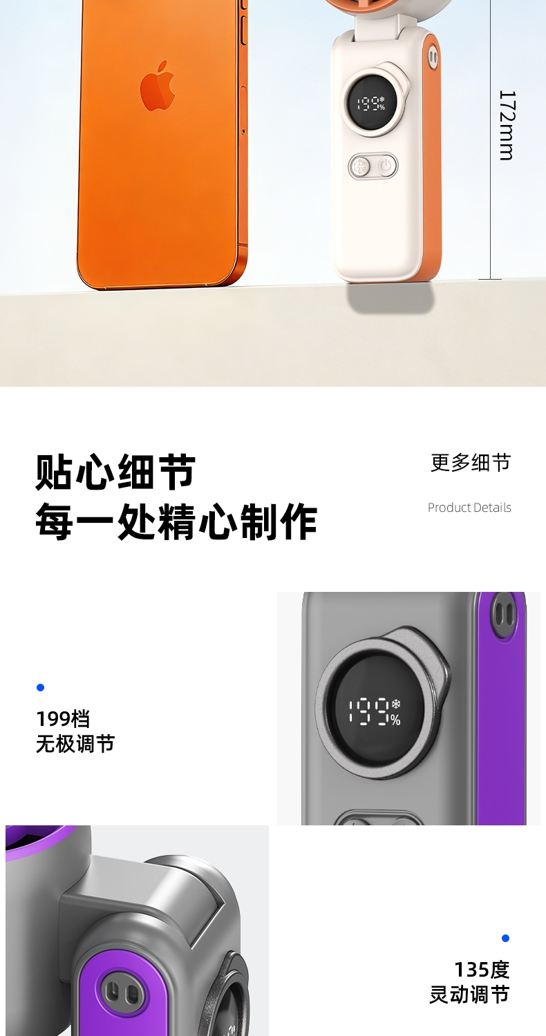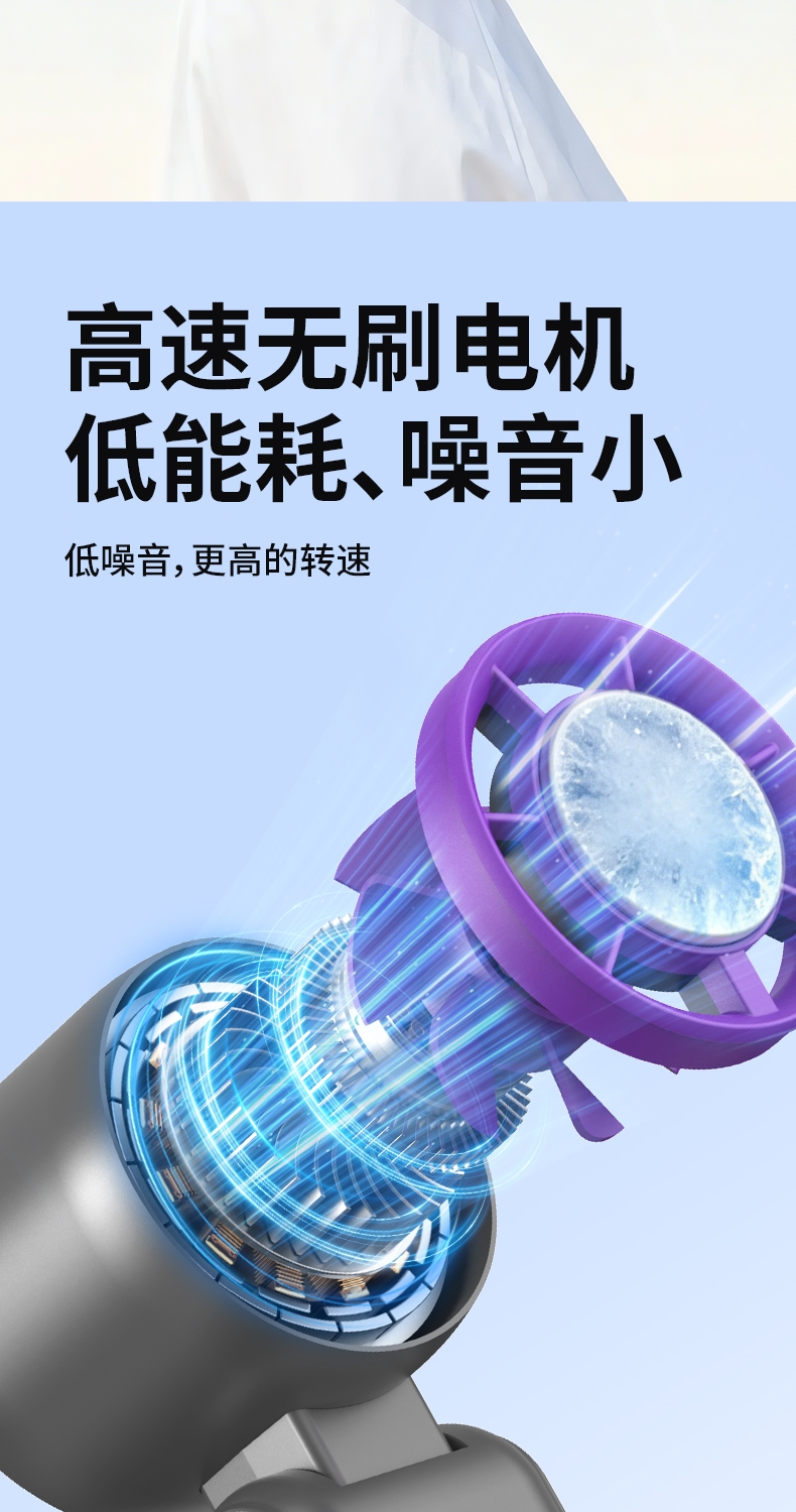 转速高,能产生较强的风力,可以快速降温;体积小巧,方便携带;工作时产生的噪音小,不干扰用户正常活动或休息