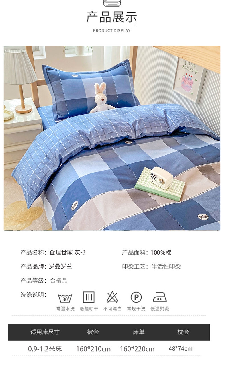 罗曼罗兰 全棉三件套查里世家-灰751292
