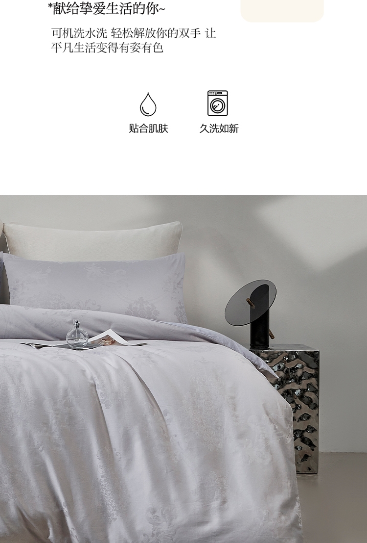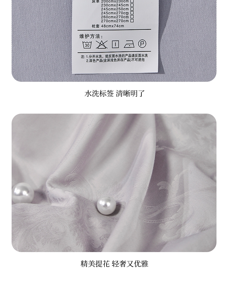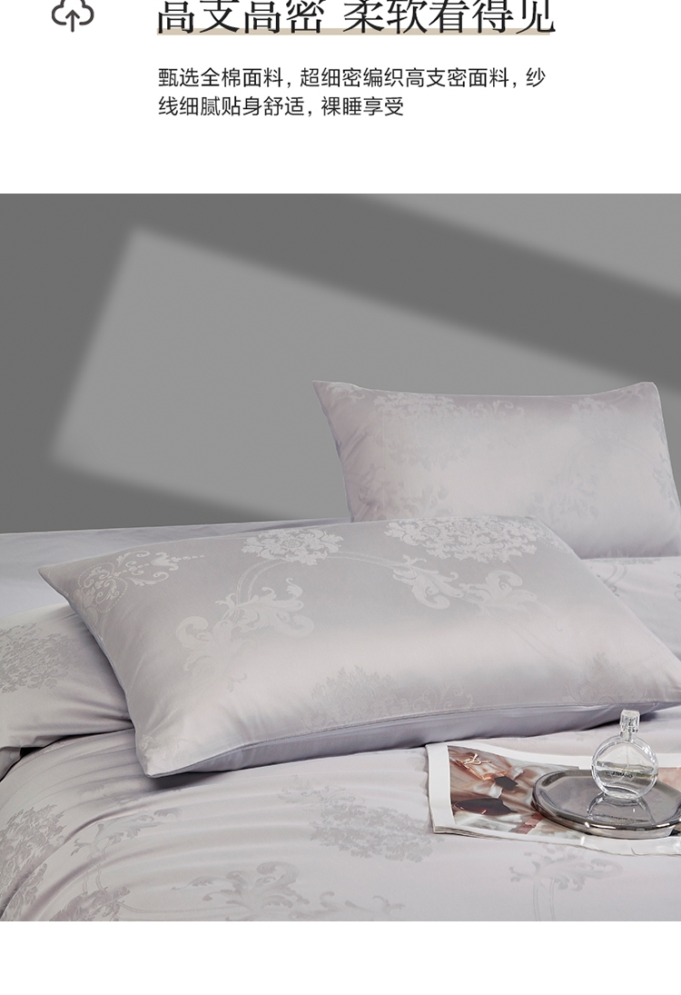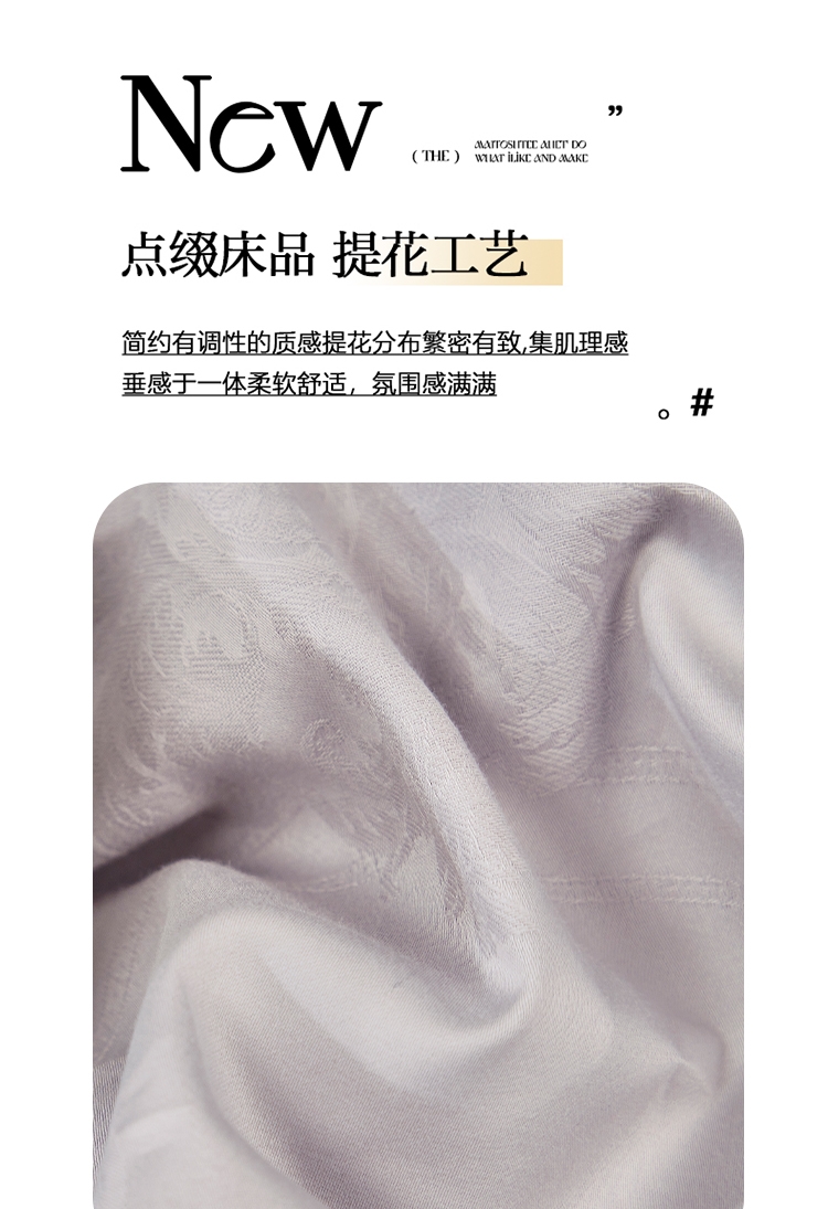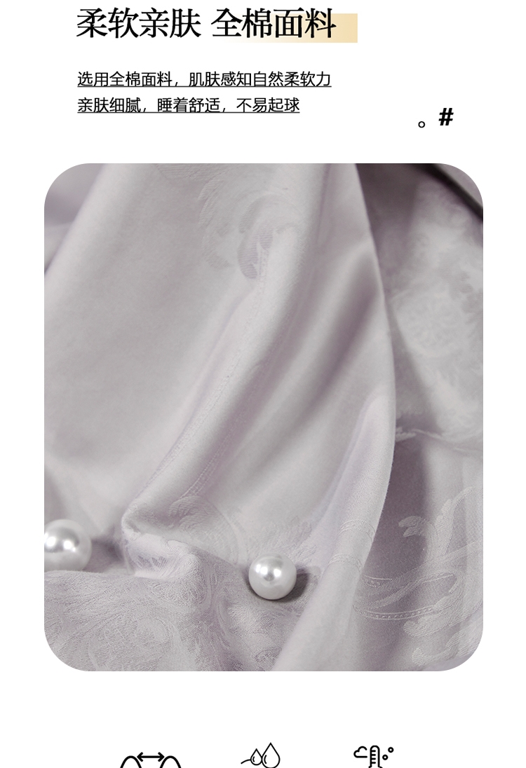 全棉材质,天然纤维贴肤无负担,透气吸湿性强;四季皆可使用;提花技术呈现细腻纹理与图案,无需印染