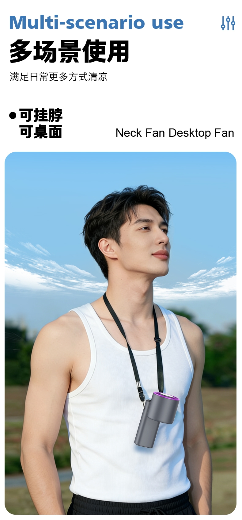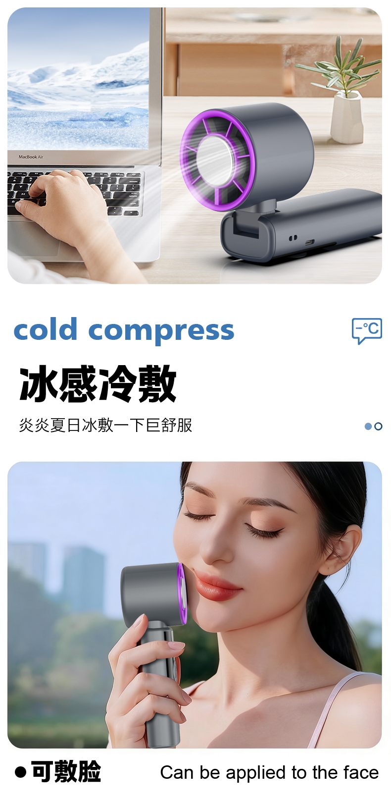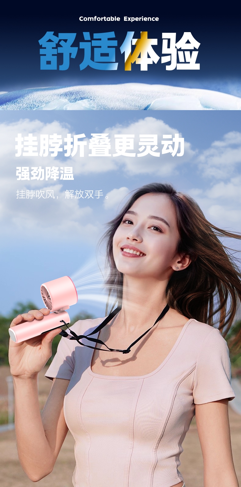 挂脖吹风,解放双手;超导制冷,快速降温;圆润机身,握感舒适
