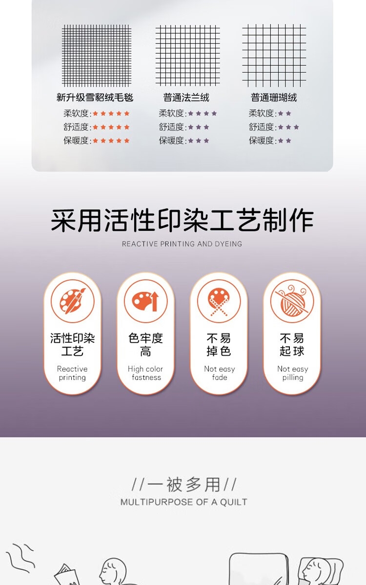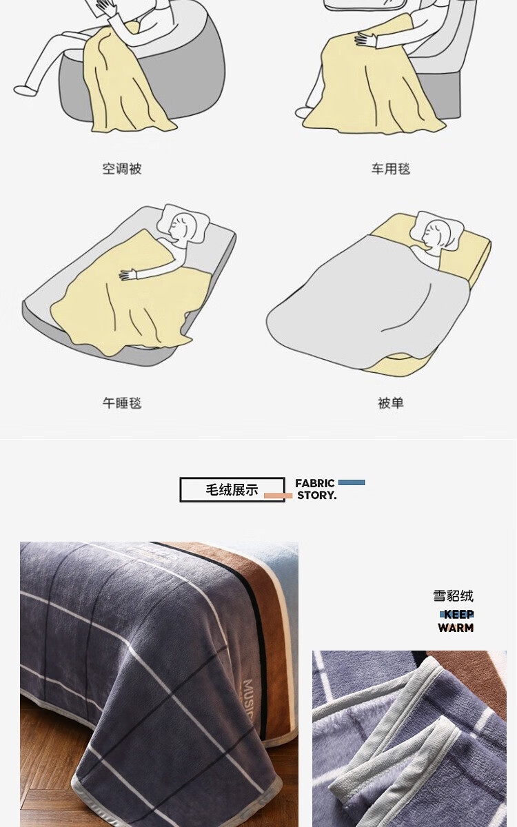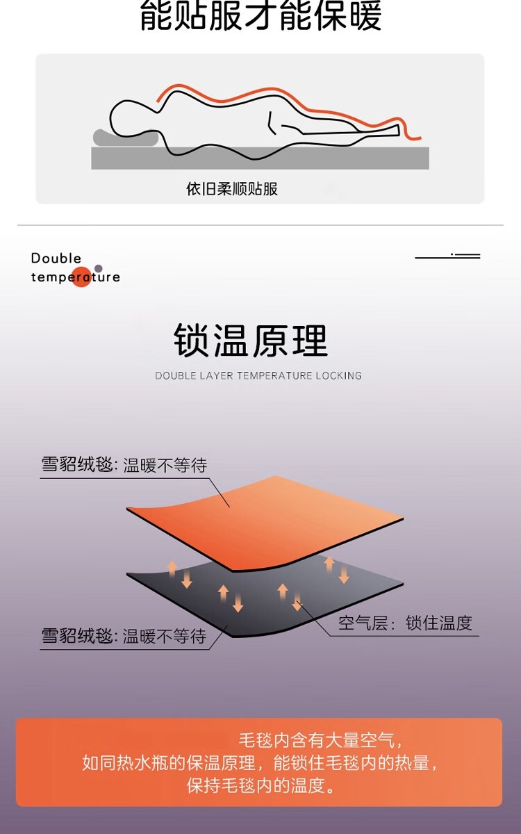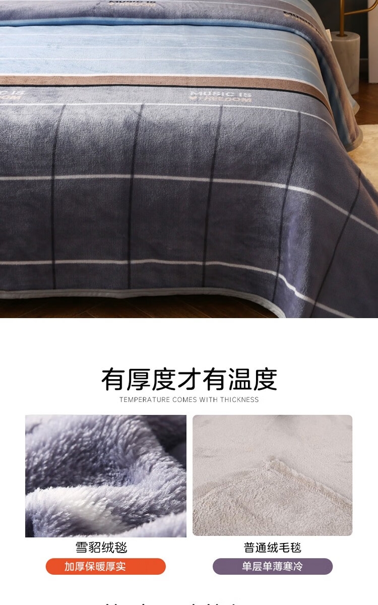 精选优质雪貂绒面料;加厚保暖,舒适亲肤;柔软细腻透气。雪貂绒手感柔软、透气性好,不闷热