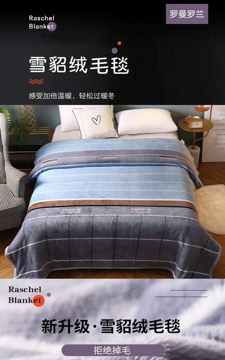 罗曼罗兰 雪貂绒毛毯简约719650