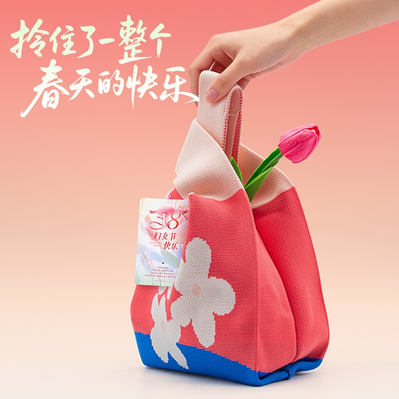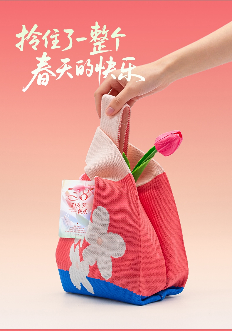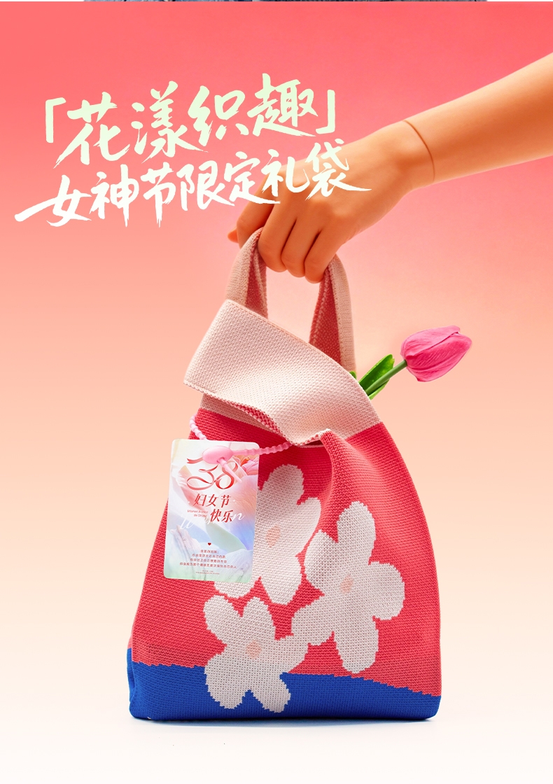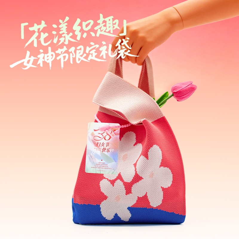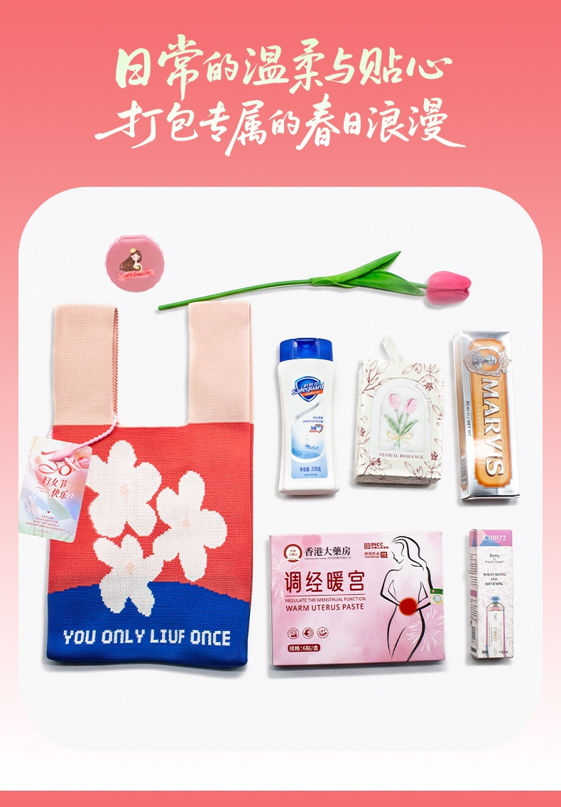 针织花漾手拎包,实用出街两不误;6 件贴心好物,从护齿到暖宫全呵护;附赠郁金香 + 贺卡,仪式感直接拉满