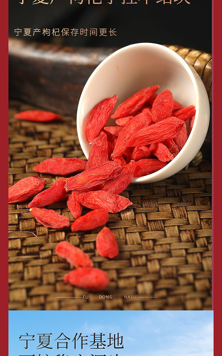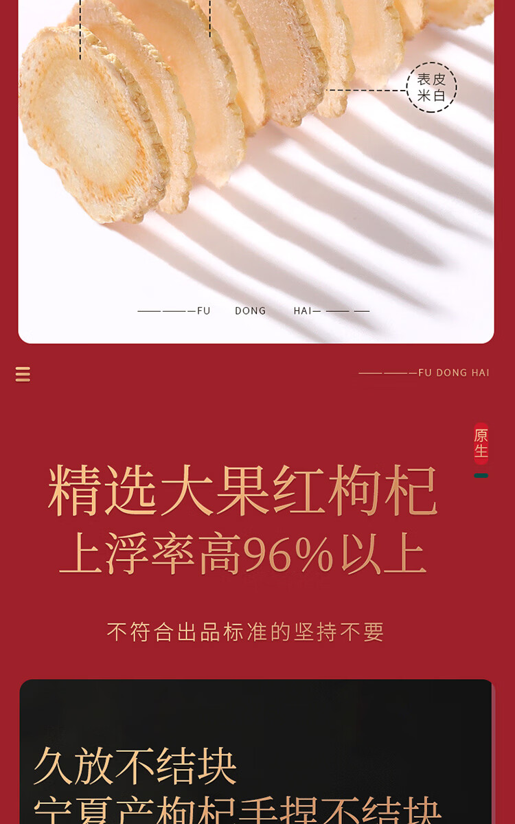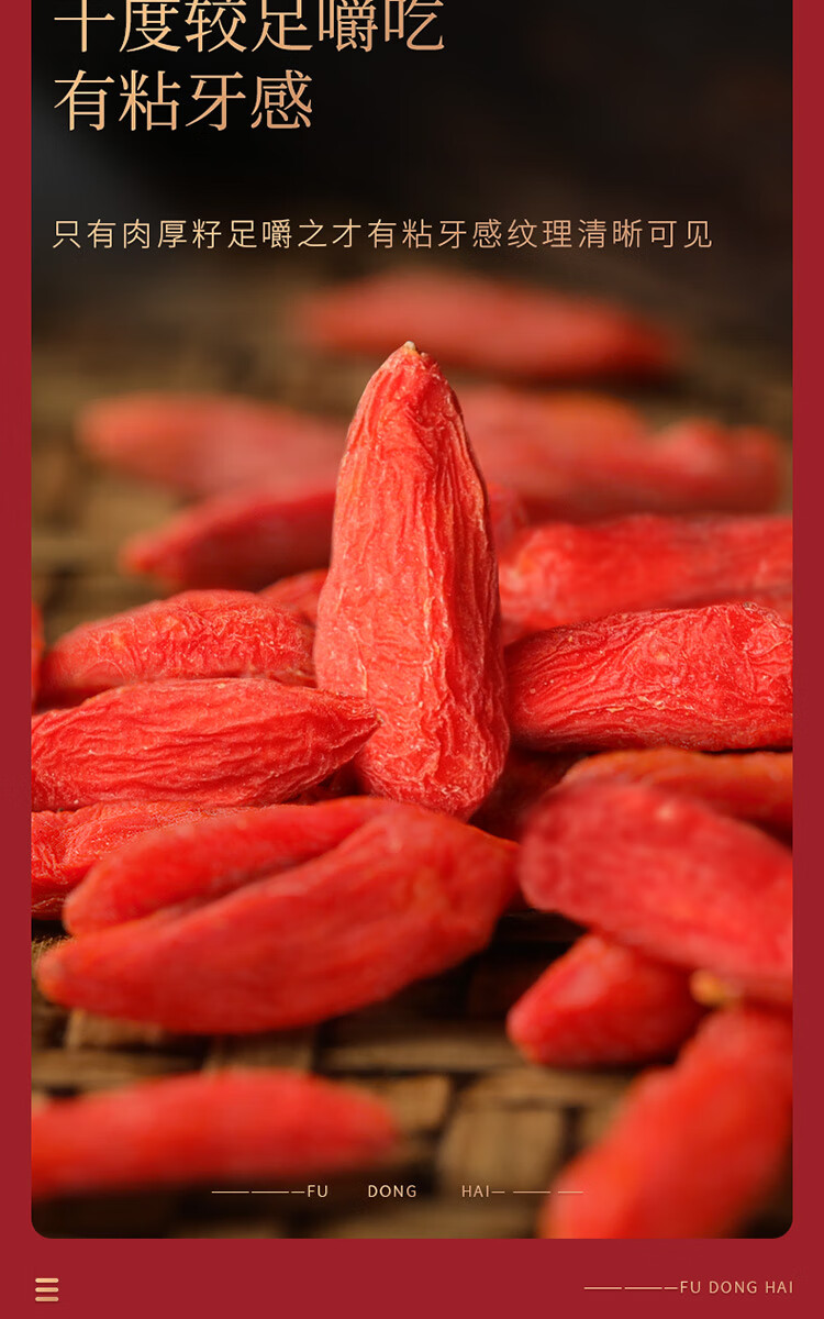 参材纹理菊花纹清晰可见;精选大果红枸杞;纹理清晰可见,色泽淡黄颜色自然