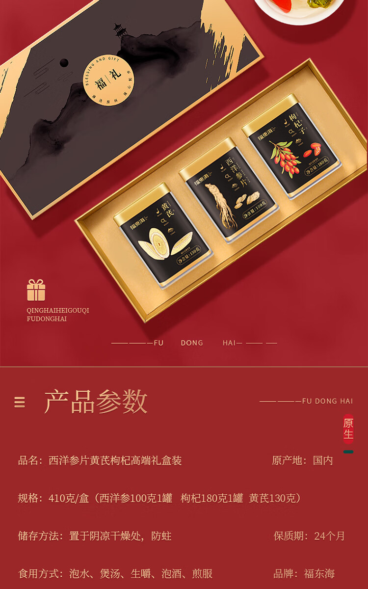 福东海 西洋参枸杞黄芪三拼礼盒410g