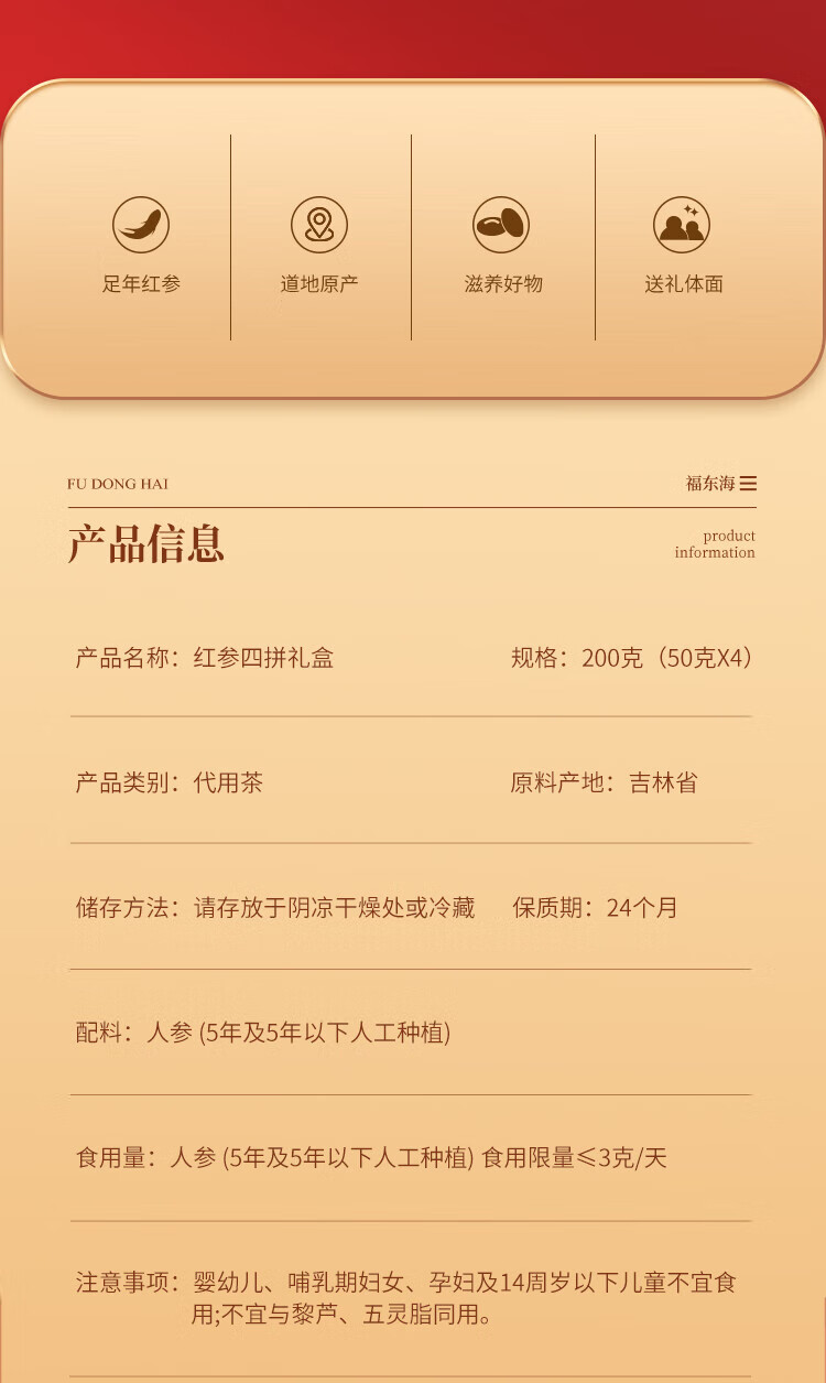 配置:红参200克/盒 (50克x4罐)1.4-1.6CM