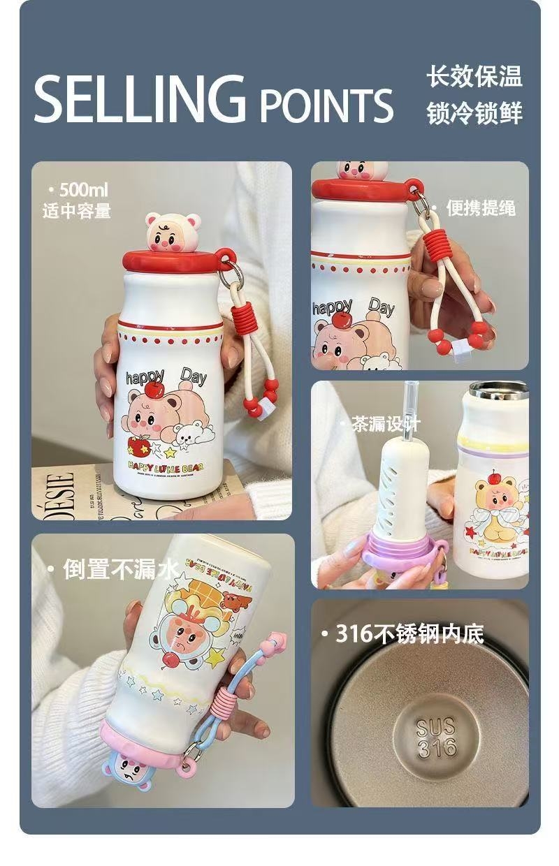 骏天 卡通保温杯自带茶仓萌趣水杯CJ-684
