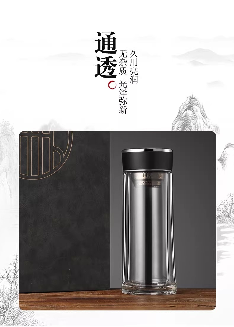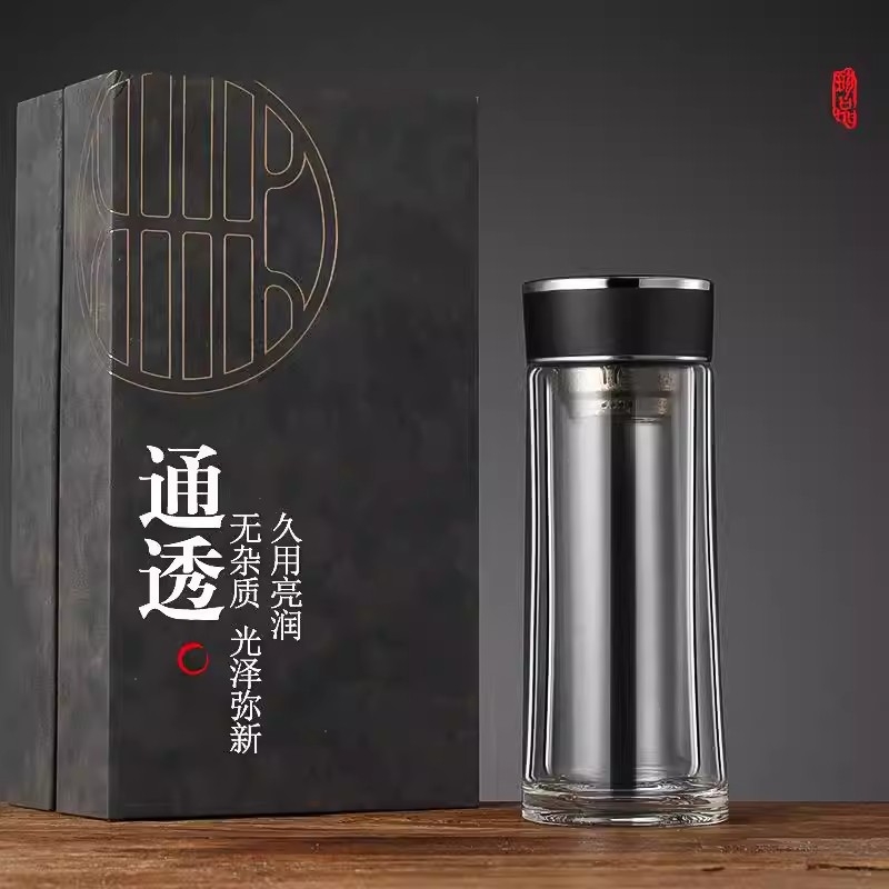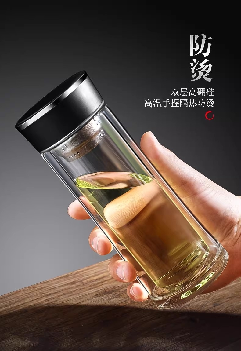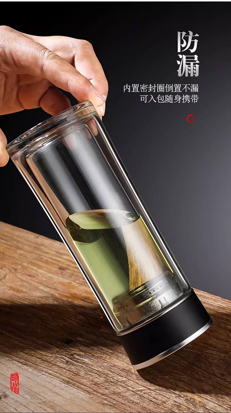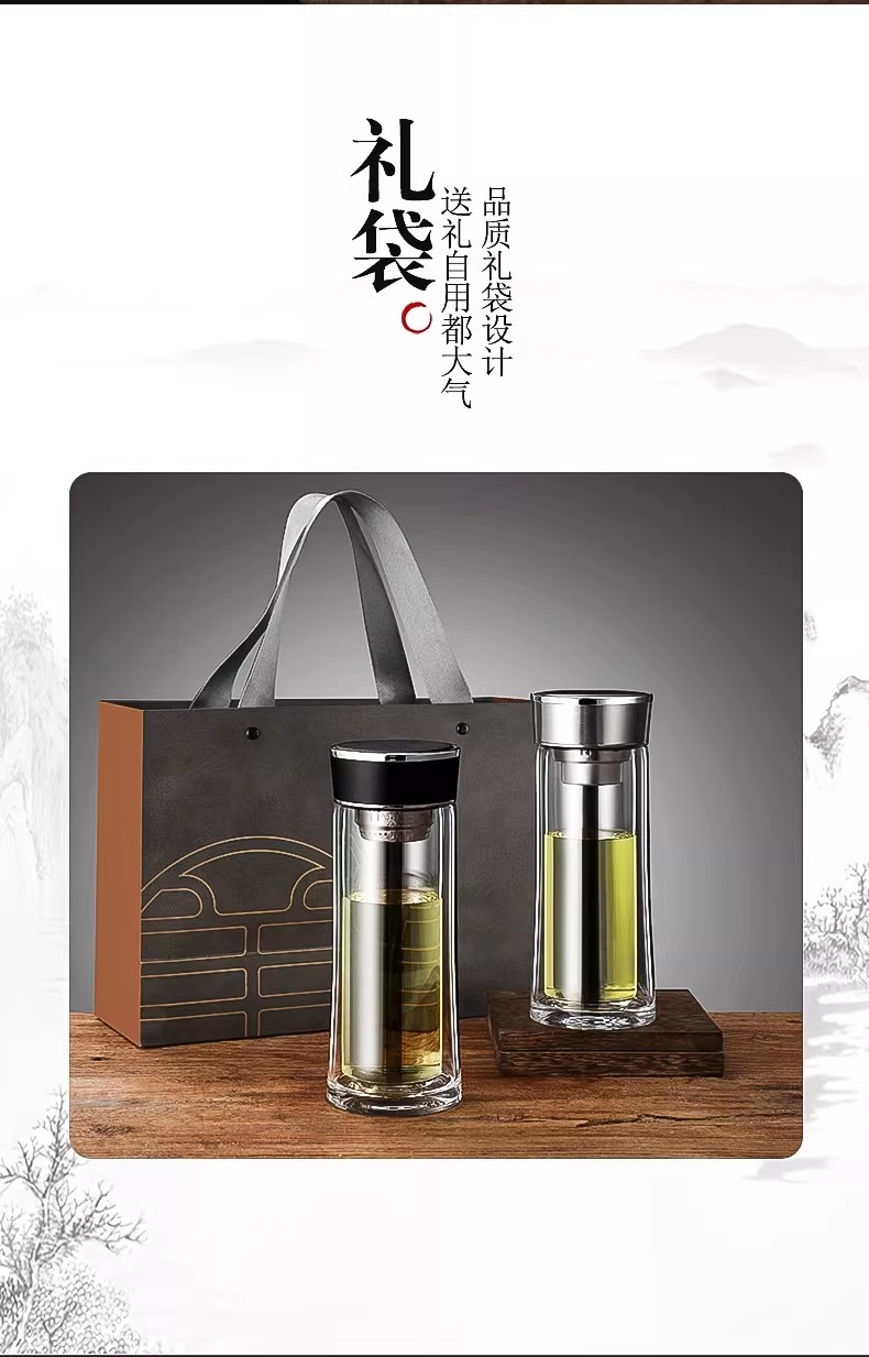 高硼硅玻璃杯健康、无毒、无异味;手工吹制而成认真对待每一件好器;内置密封圈倒置不漏可入包随身携带;品质礼袋设计,送礼自用都大气;双层高硼硅高温手握隔热防烫