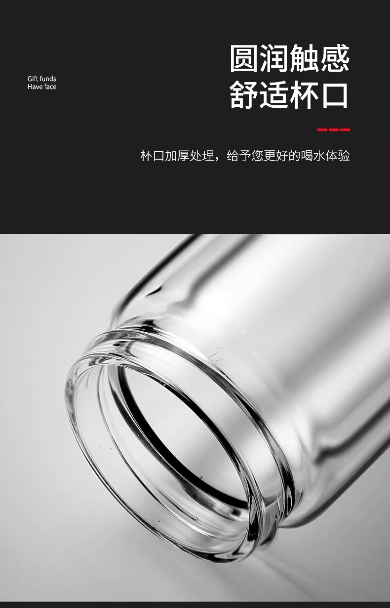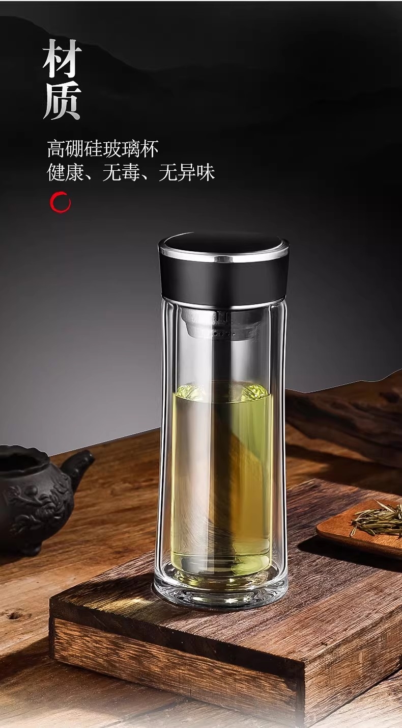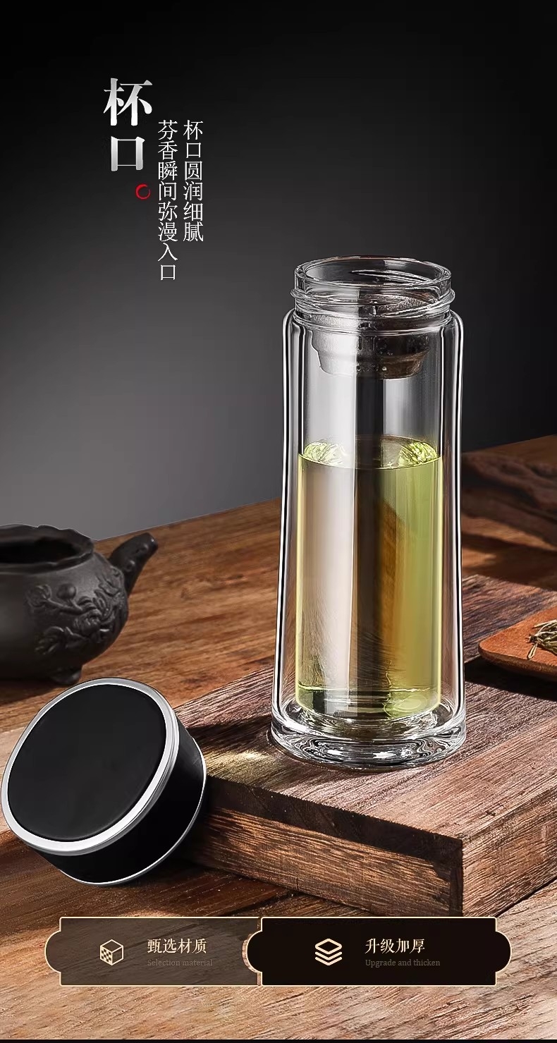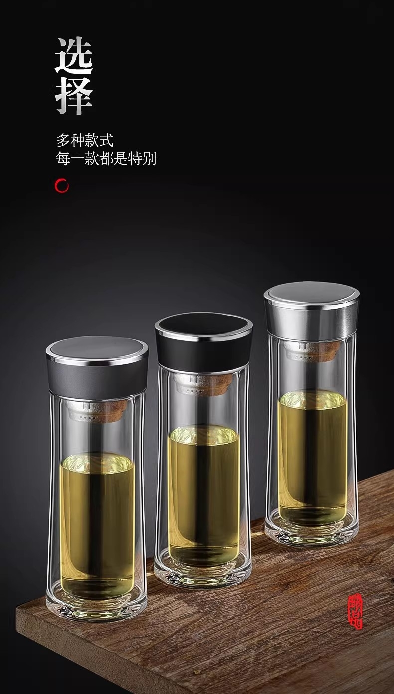 高硼硅玻璃杯健康、无毒、无异味;手工吹制而成认真对待每一件好器;内置密封圈倒置不漏可入包随身携带;品质礼袋设计,送礼自用都大气;双层高硼硅高温手握隔热防烫