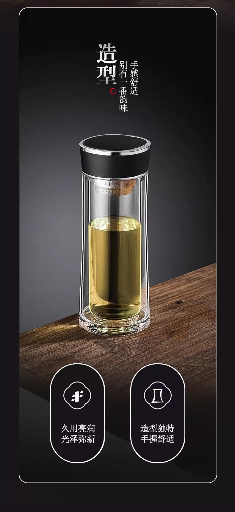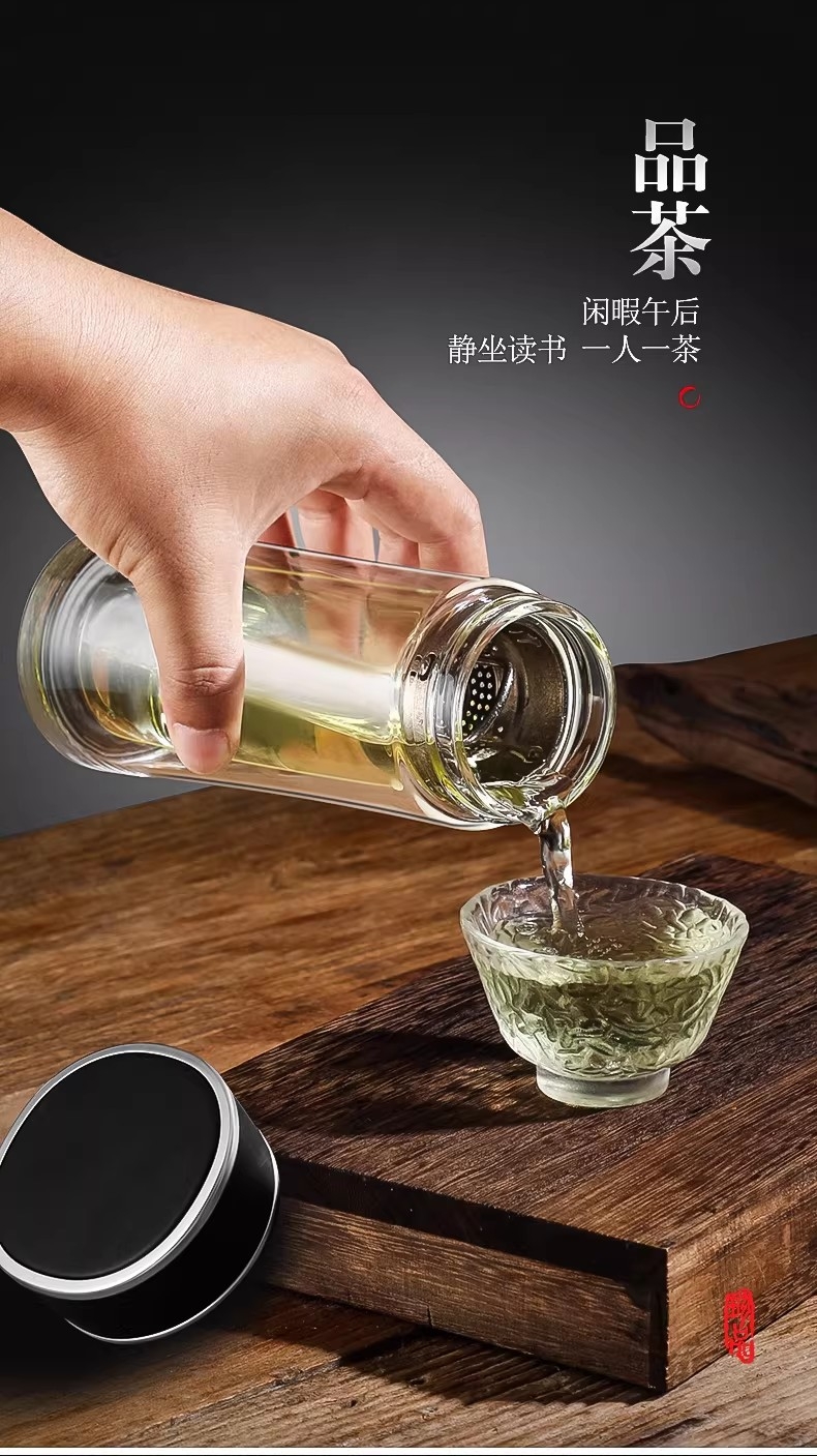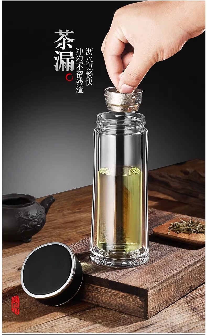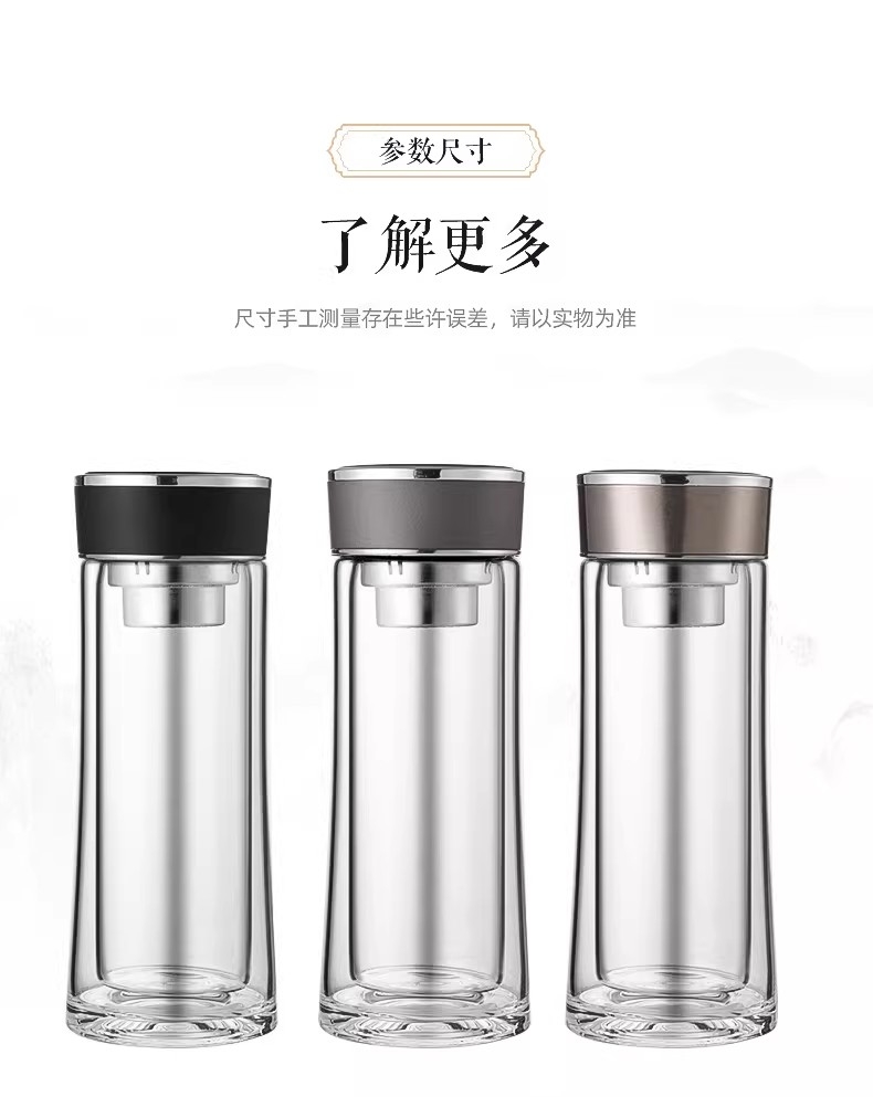 高硼硅玻璃杯健康、无毒、无异味;手工吹制而成认真对待每一件好器;内置密封圈倒置不漏可入包随身携带;品质礼袋设计,送礼自用都大气;双层高硼硅高温手握隔热防烫
