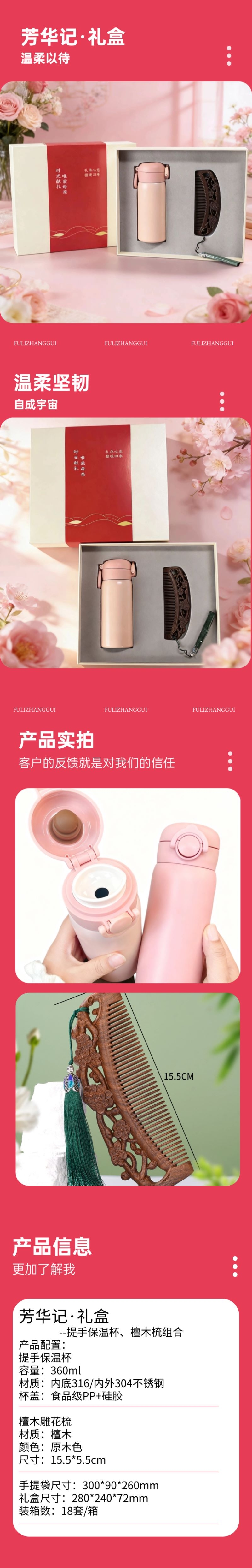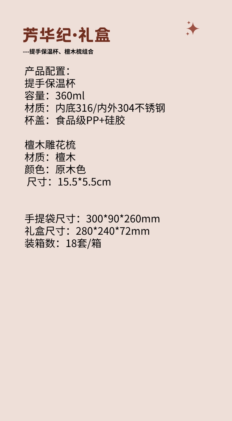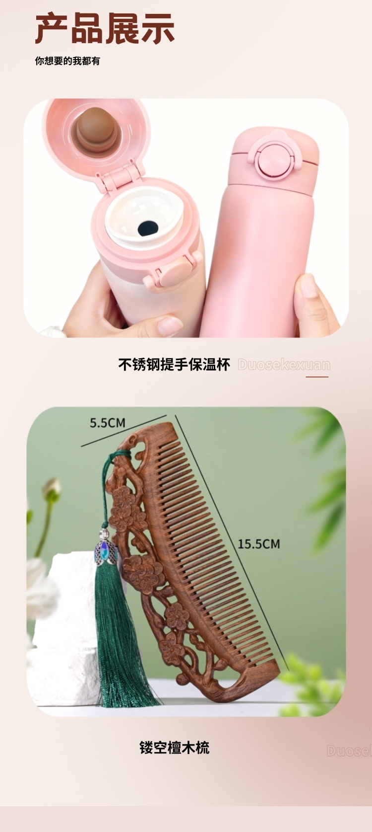 配置清单:提手保温杯*1 檀木雕花梳*1