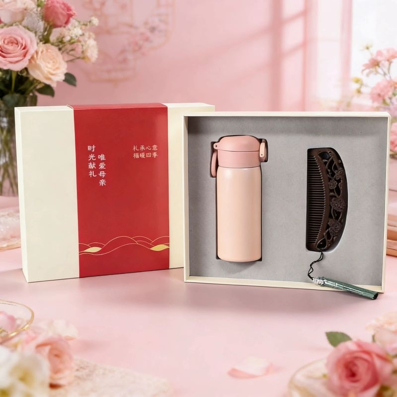 女性专属礼盒,保温杯暖身,檀木梳养发,贴心之选!;妈妈礼盒来袭,手提保温杯+檀木梳,实用又精致!;母亲佳礼!保温杯便携,檀木梳养发,尽显关爱心意!