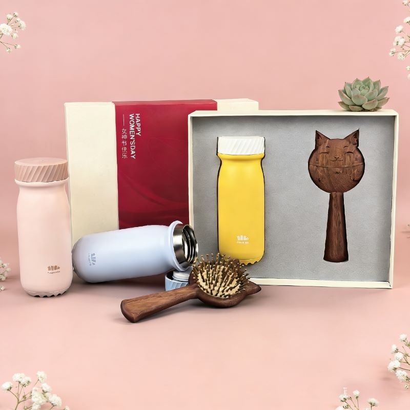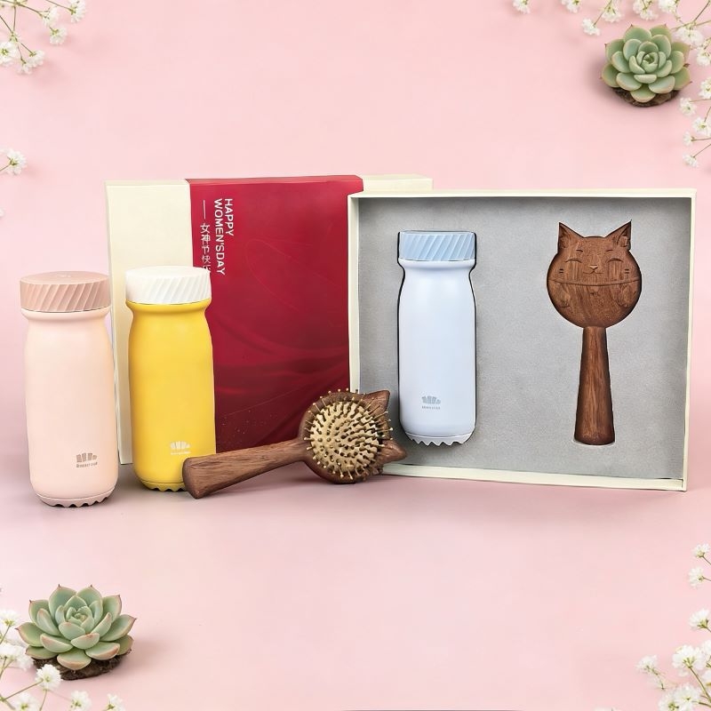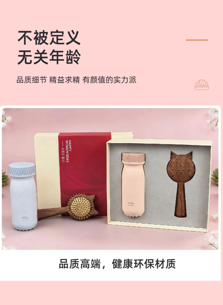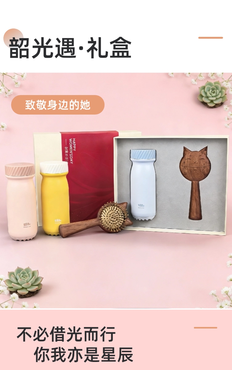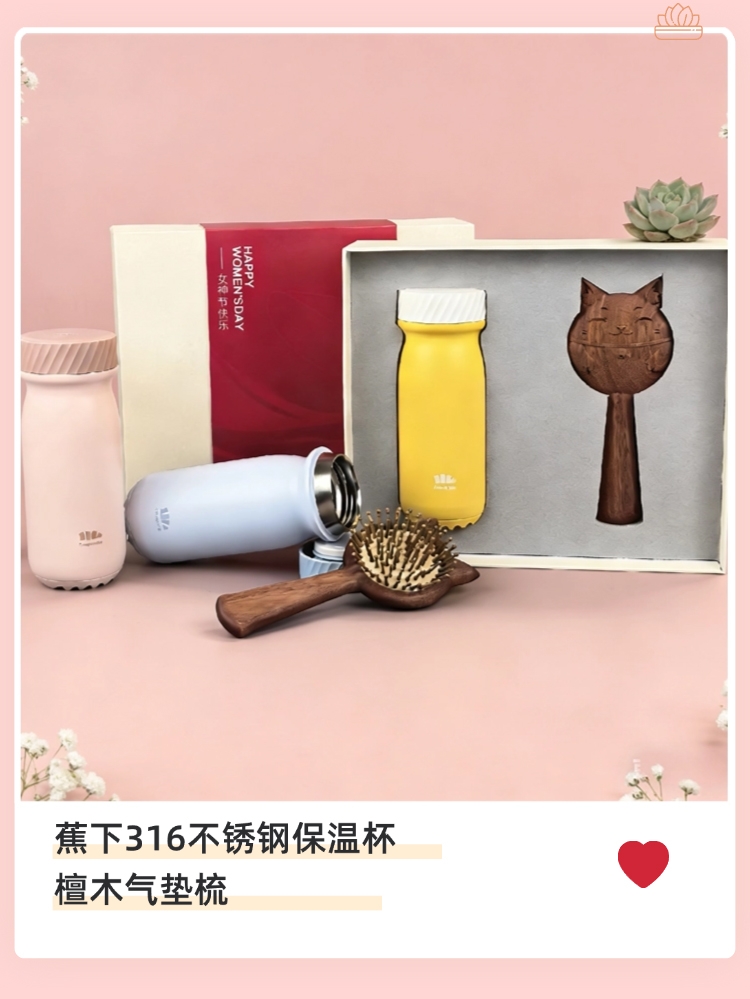 三八礼盒超赞!蕉下保温杯+招财猫梳,实用又好运!;三八节选它!蕉下保温杯配招财猫梳,暖心又吉祥!;三八专属礼盒!保温杯实用,招财猫梳添福,超棒!