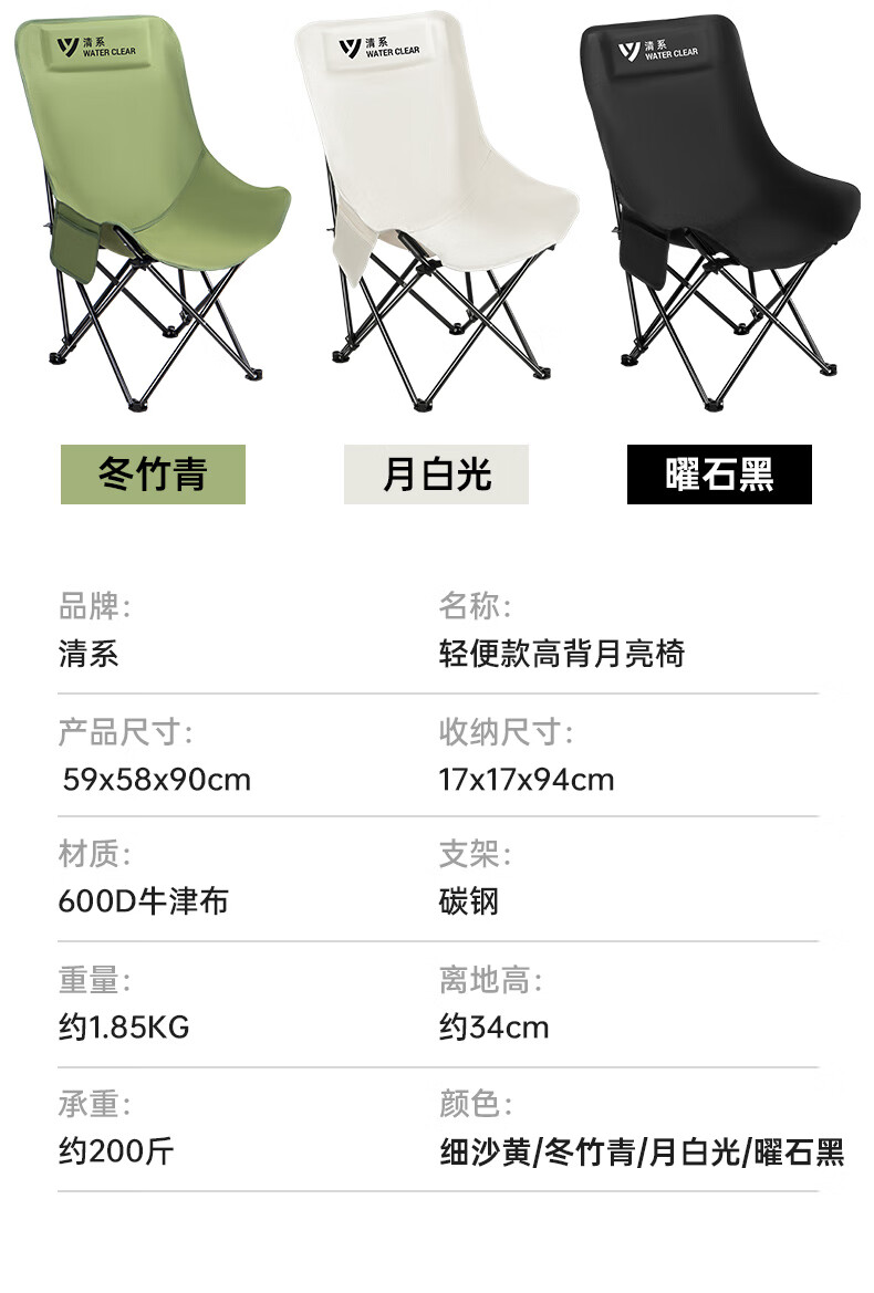 清系 高背月亮椅黑色轻便款