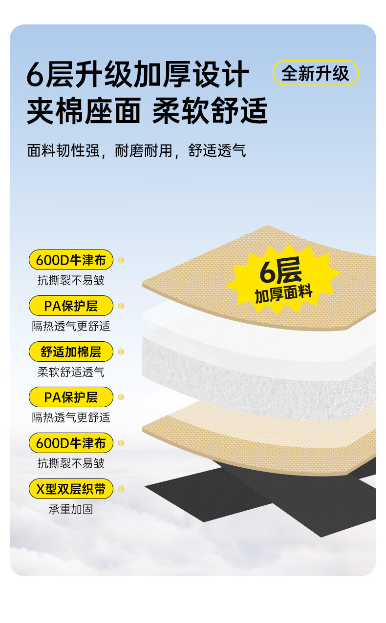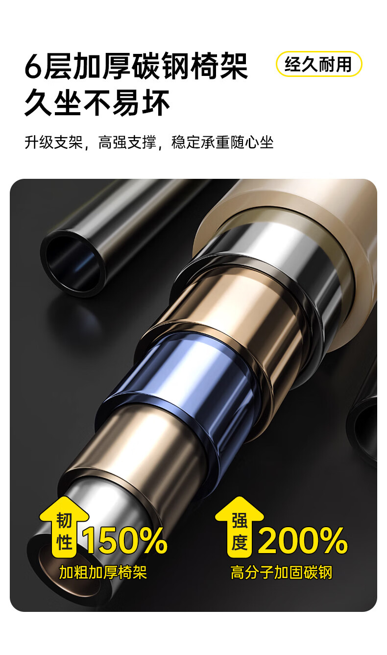 6层加厚碳钢椅架;升级支架,高强支撑,稳定承重随心坐;经久耐用