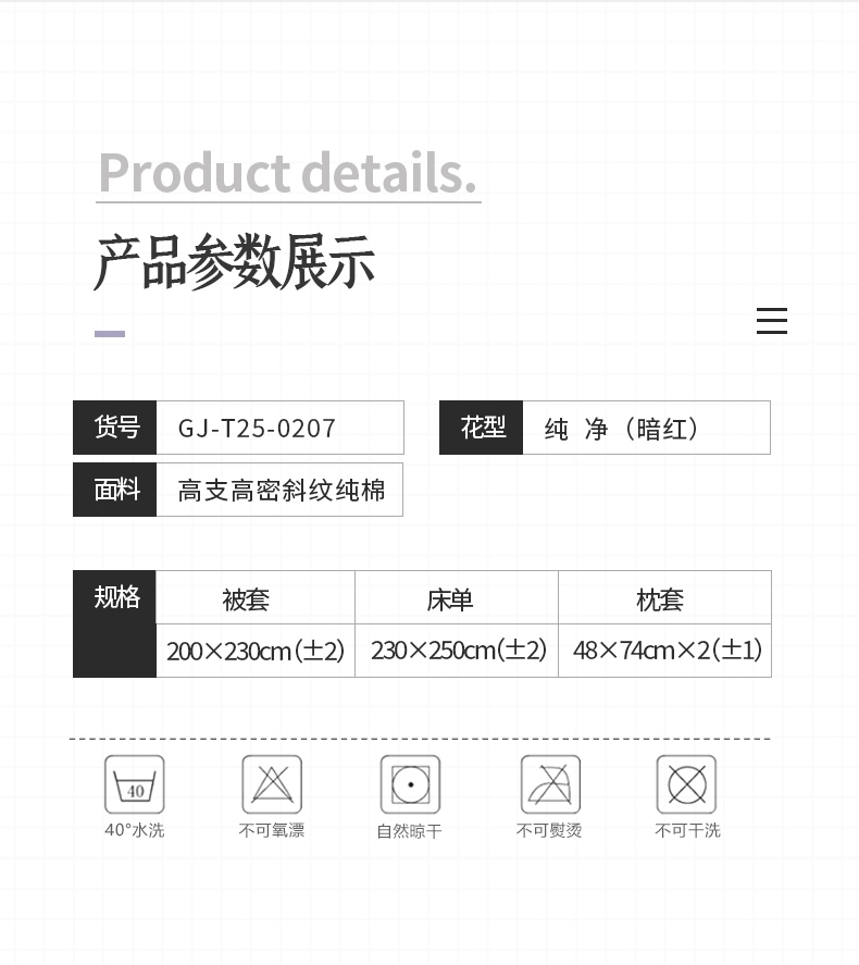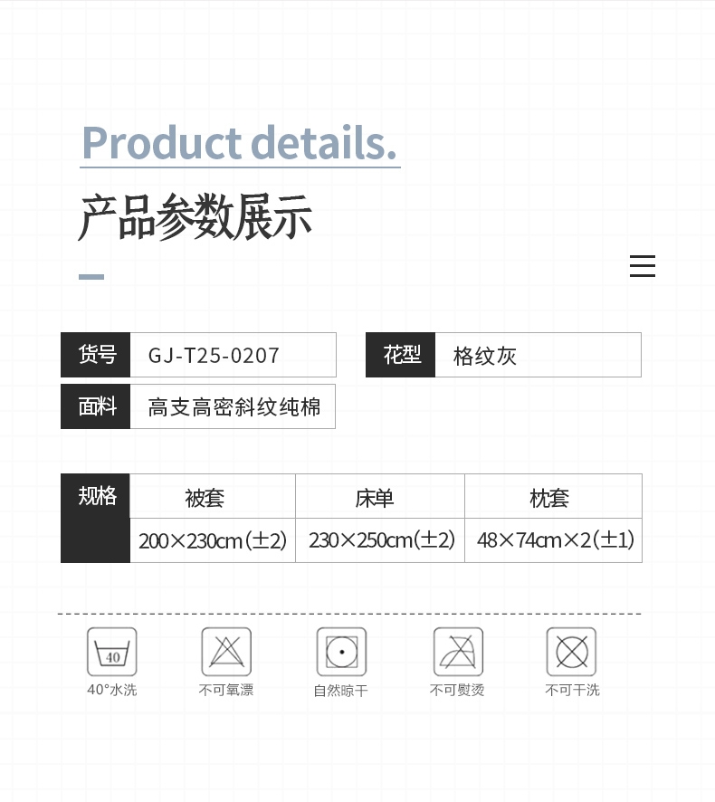 被里材质:高支高密斜纹纯棉