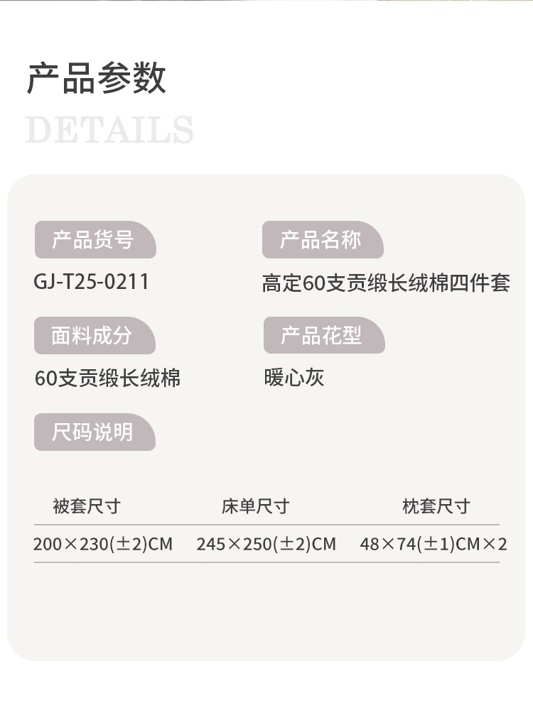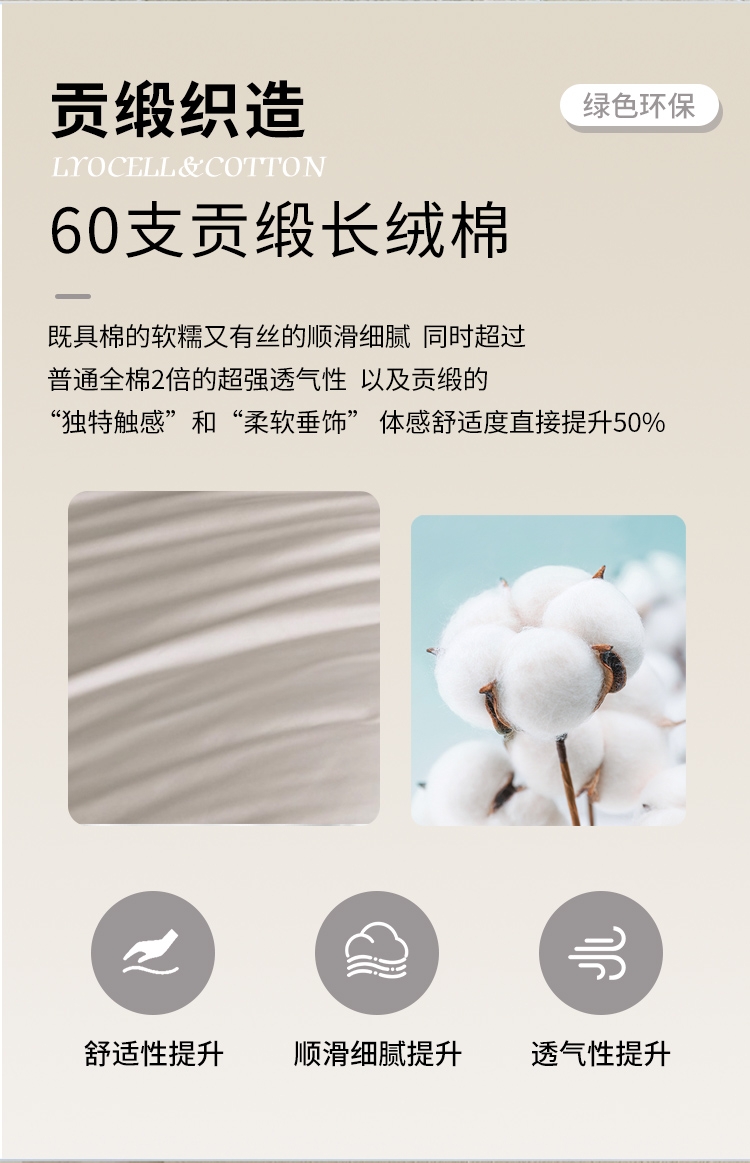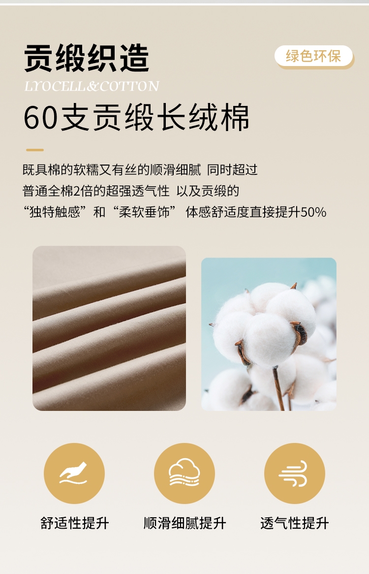 被里材质:60支贡缎长绒棉