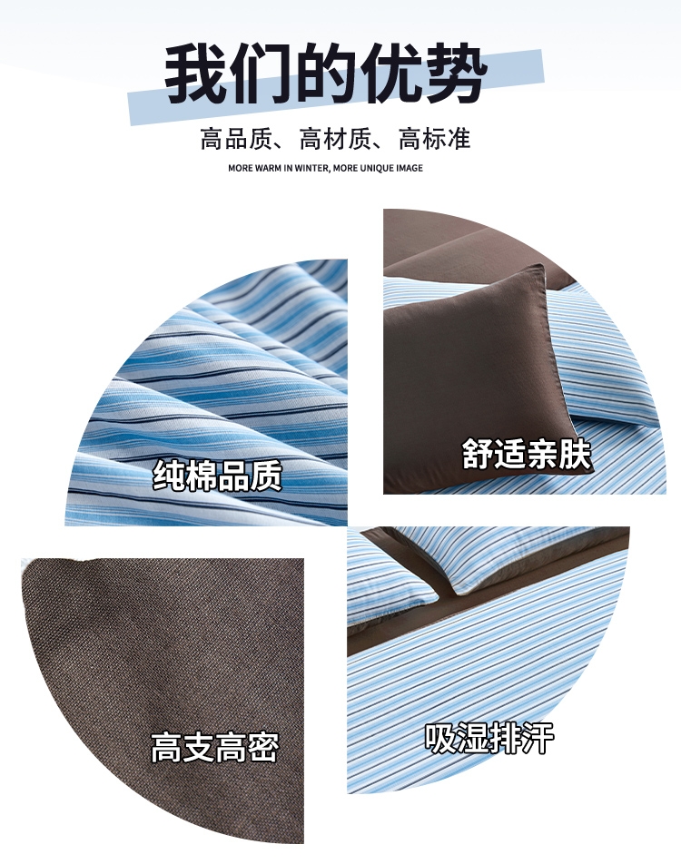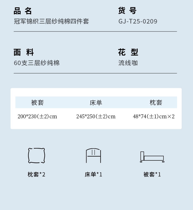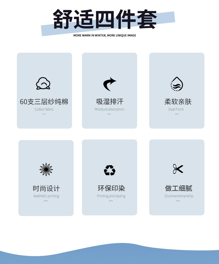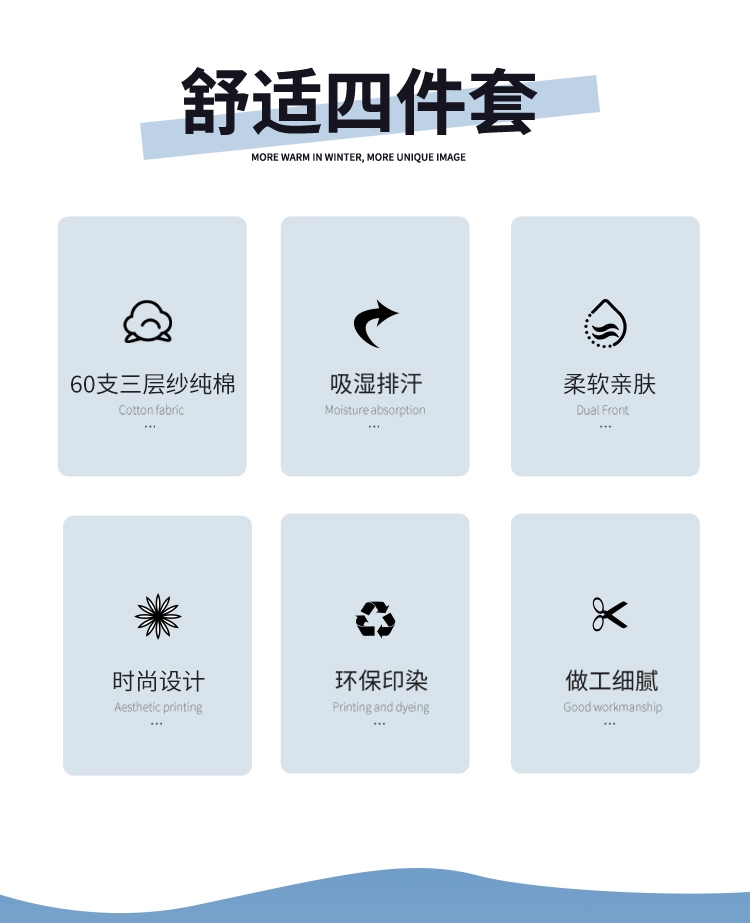 60支三层纱棉材质,长绒棉密度更高,支纱更细,;精细工艺,用心细节,高品质代表。;新风尚花型设计,传承与创新,让生活更精彩。