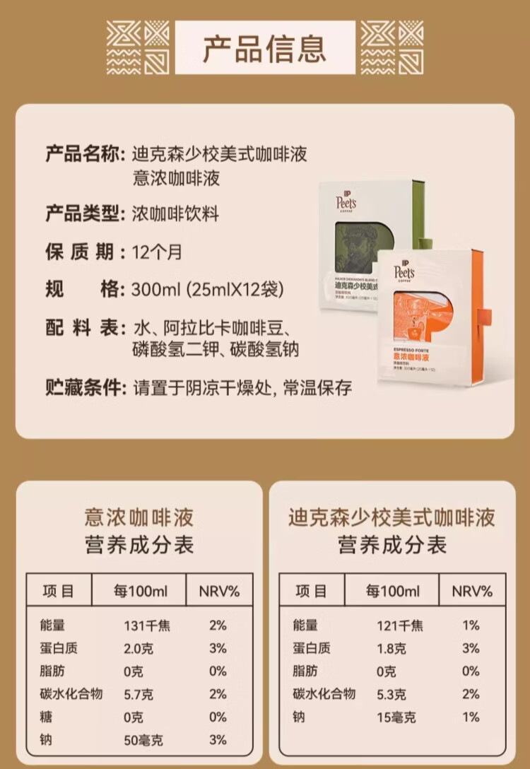 配置:迪克森美式咖啡液*1盒 意浓咖啡液*1盒 海盐太妃糖105g*2罐 定制礼盒+手拎袋*1套
