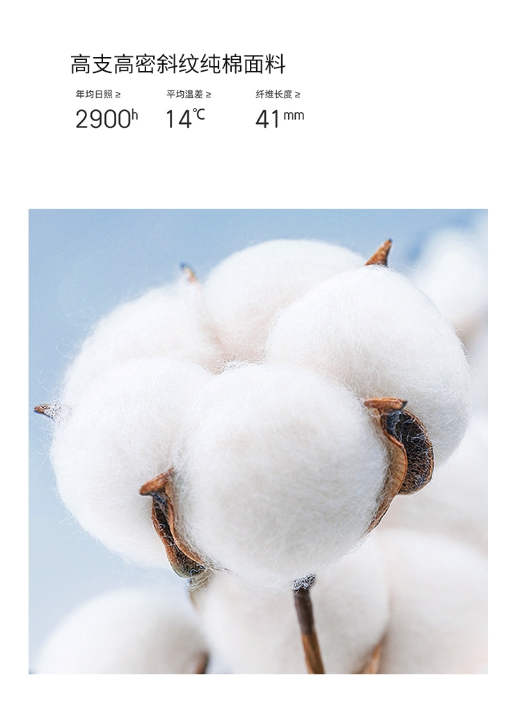 100%新疆棉花,聚暖保温,自然健康。;云朵般面料,创新织造,亲肤细腻,肌肤感知自然柔软力;精细工艺,用心细节,高品质代表。