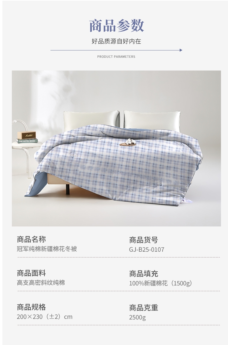 冠军(Champion) 纯棉新疆棉花冬被2500gGJ-B25-0107