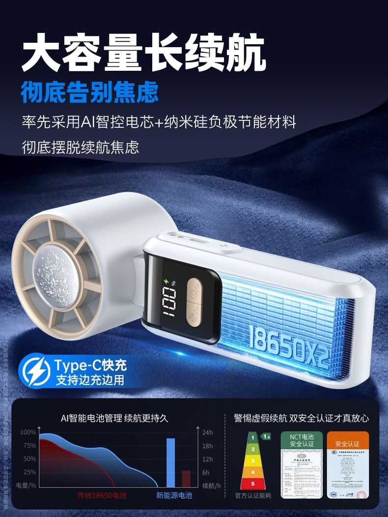 配备 LED 数字显示屏,电量、档位状态一目了然;解放双手,可挂在脖子上随身使用,便携性强;内置大容量电池,支持长时间使用,减少频繁充电