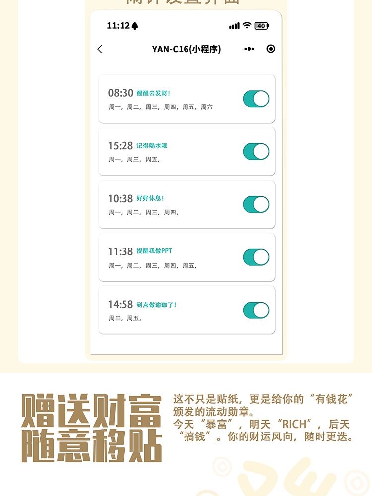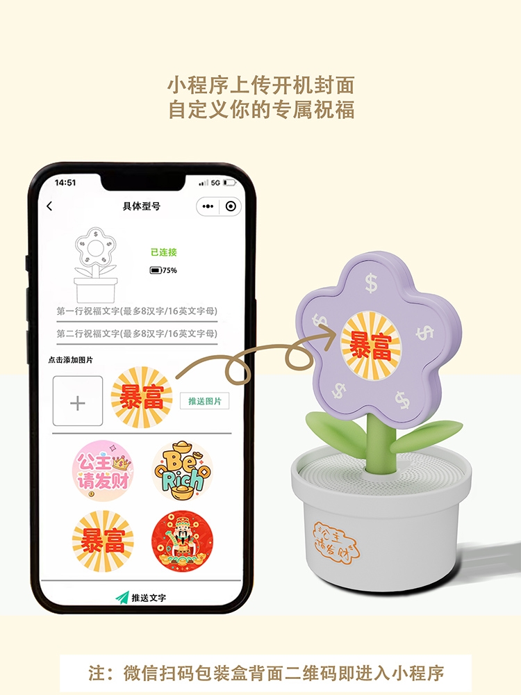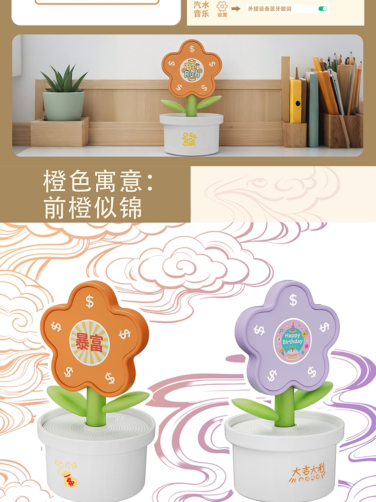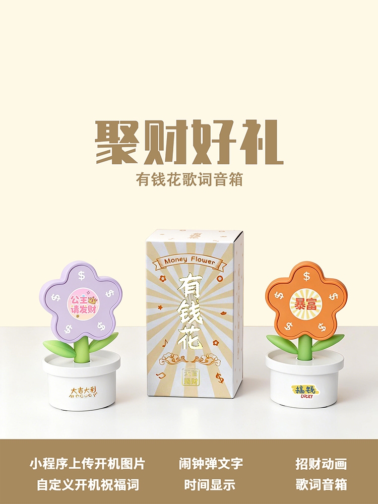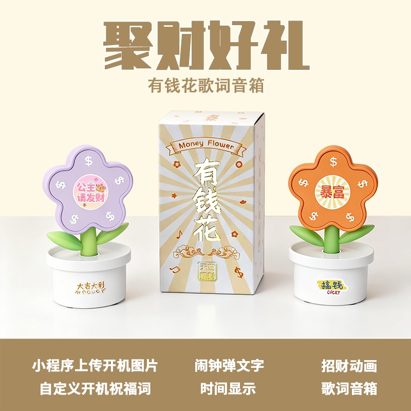 歌词显示 + 音箱,播放音乐时同步滚动歌词;有钱花”“暴富”“大吉大利” 传递 美好寓意;新年、开业、乔迁、生日等场景都适用