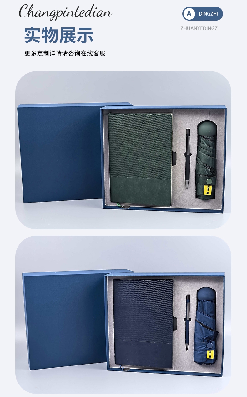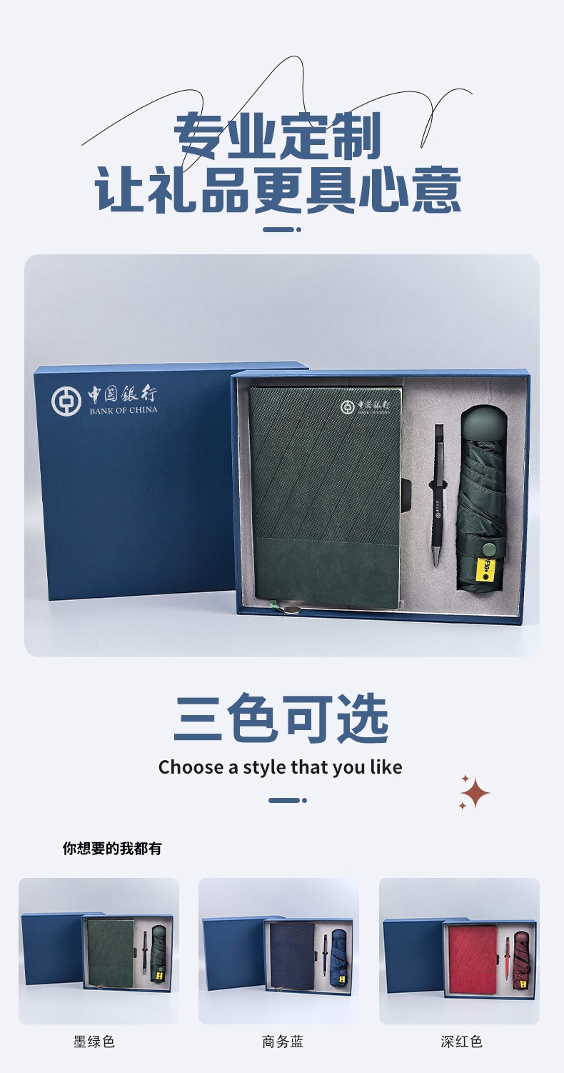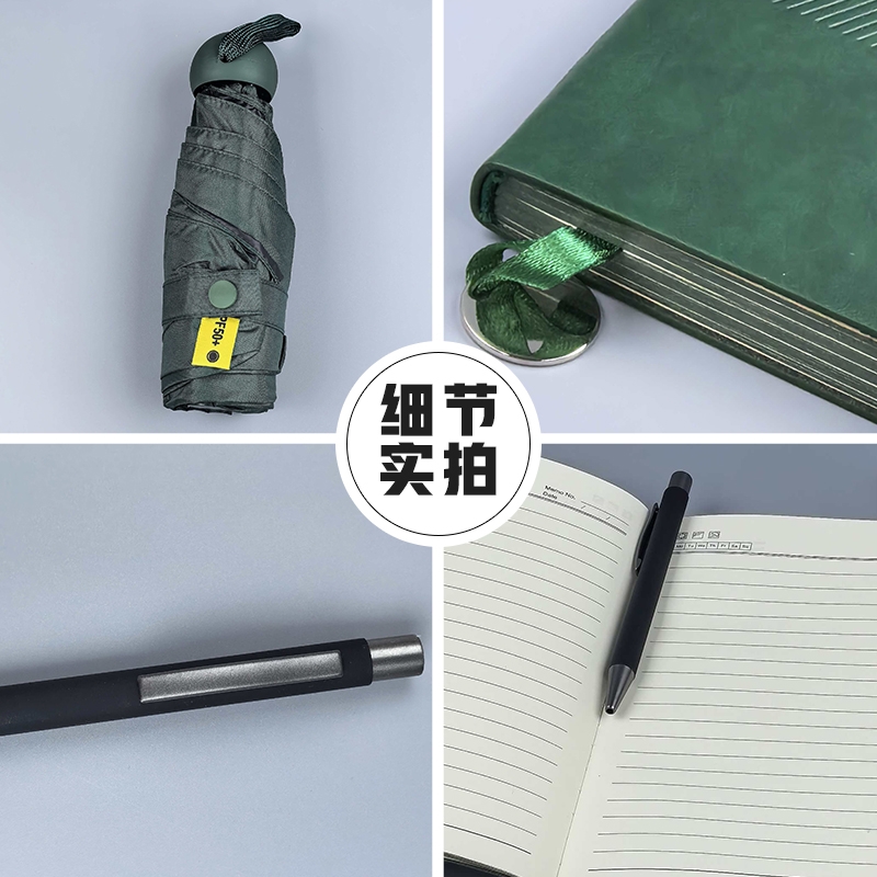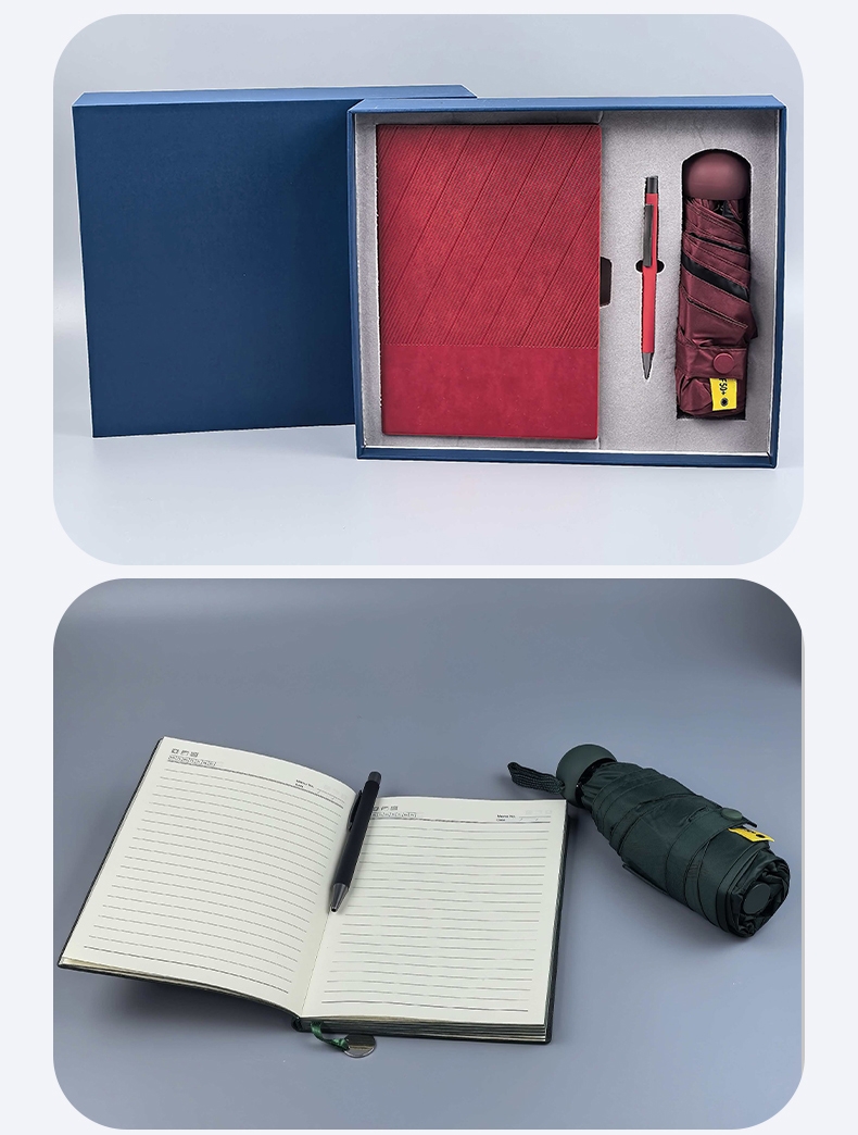 这款商务礼盒妙!晴雨伞挡风雨,本笔助效率,实用必备;商务出行优选!晴雨伞随行,本笔记录,学工两相宜!;商务礼盒超实用!晴雨伞遮护,本笔助学工,一盒搞定!