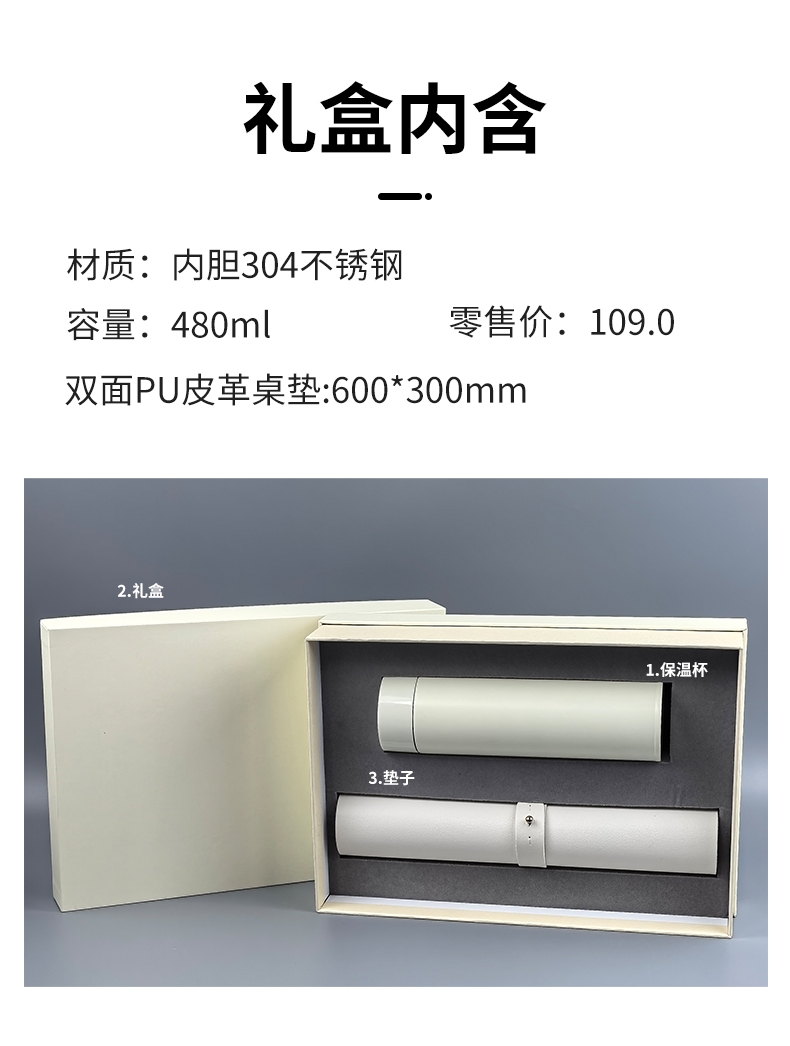 配置清单:保温杯*1 皮革桌垫*1