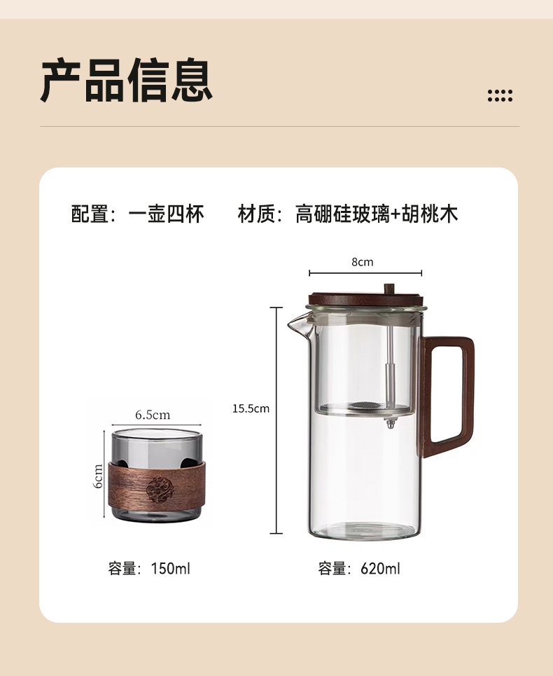 配置清单:飘逸泡茶壶*1 分享杯*4