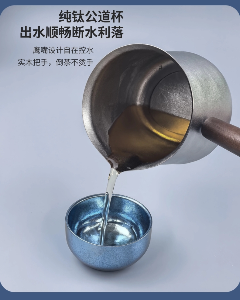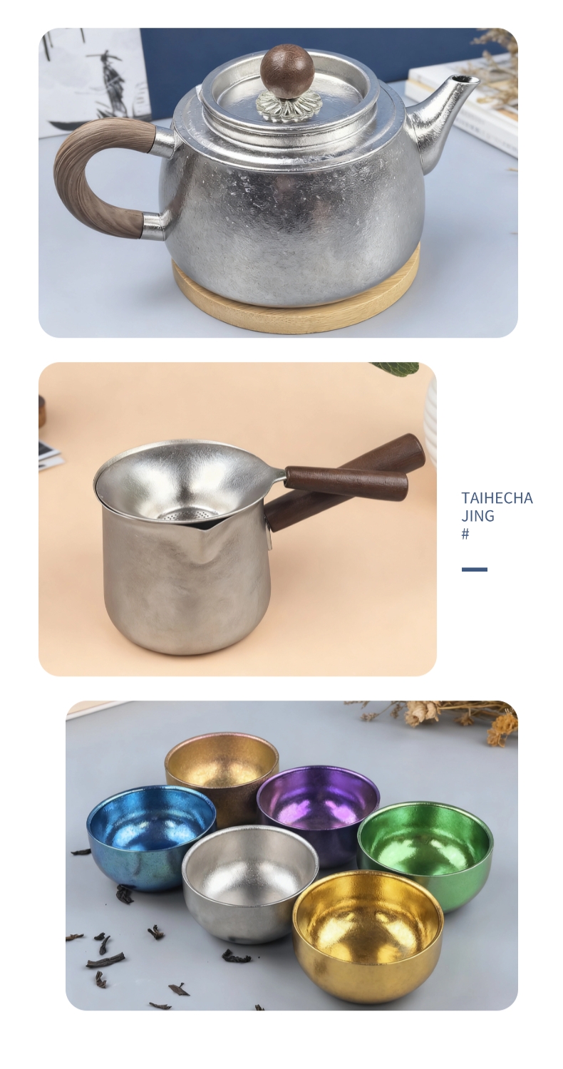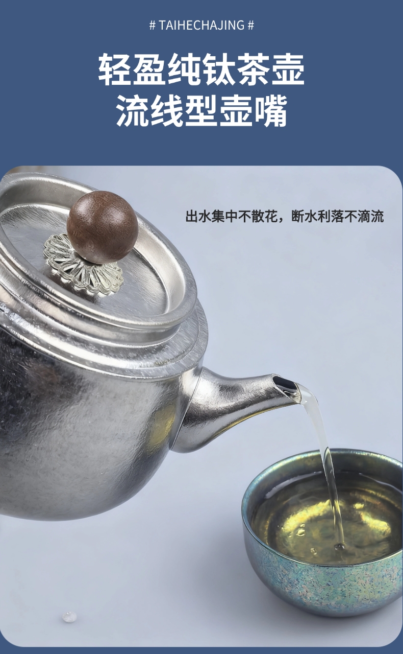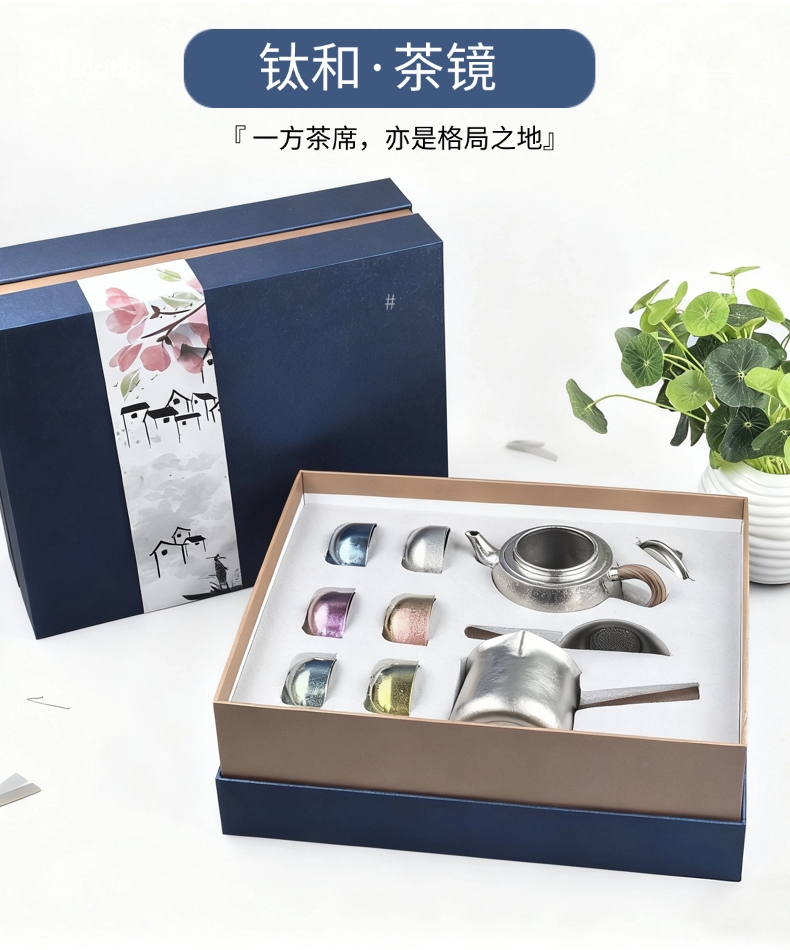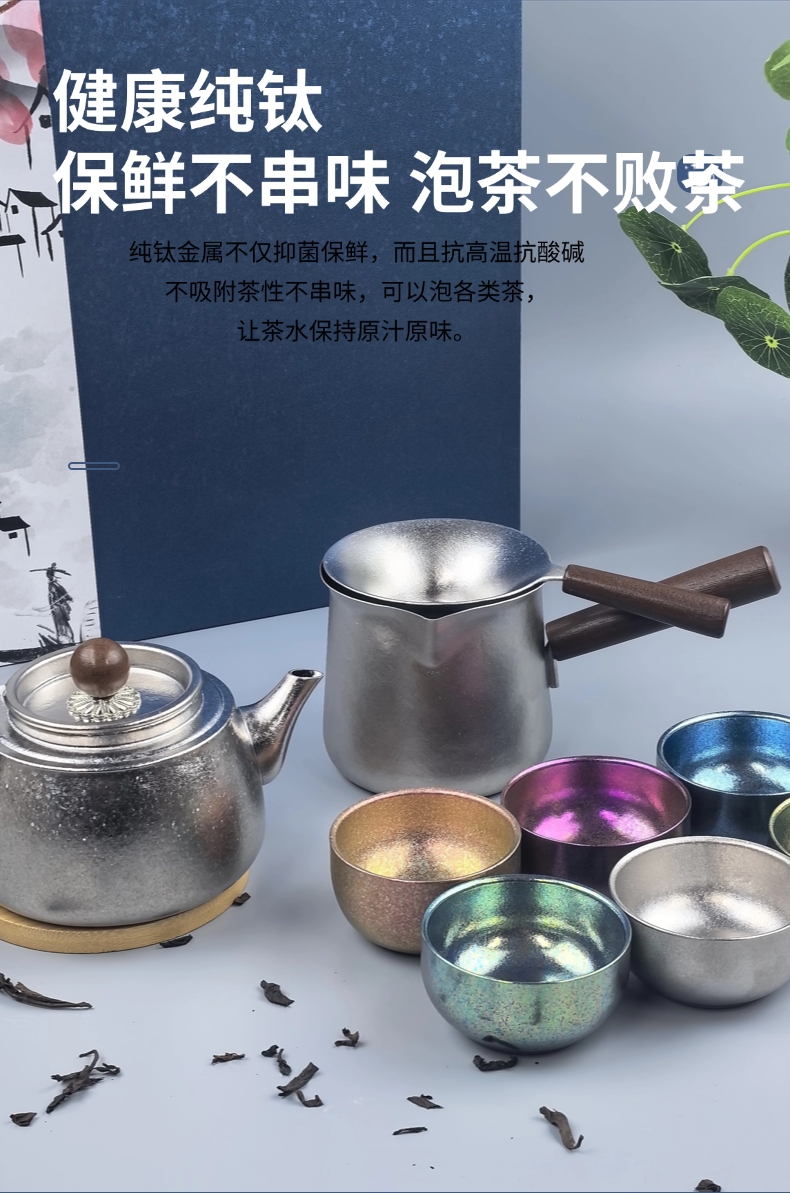 钛茶具套装,轻便抑菌,高端茶礼首选;炫彩钛杯+钛壶,耐腐蚀,健康品茶更安心;轻奢质感钛茶具,实用又有面,送礼佳品