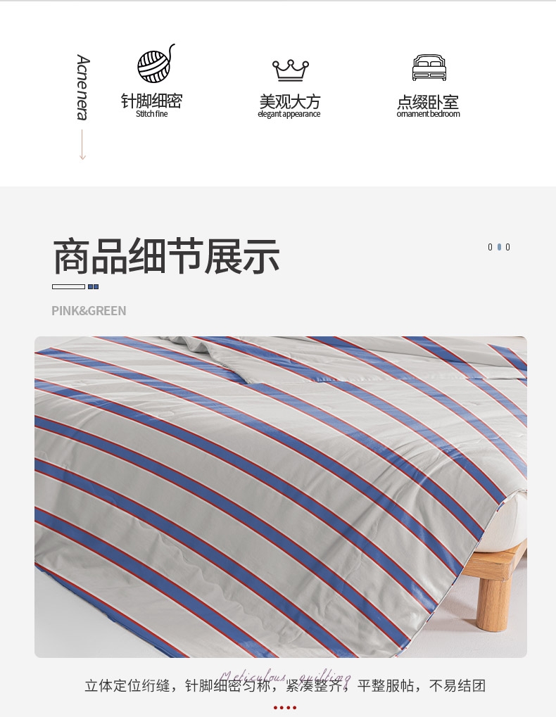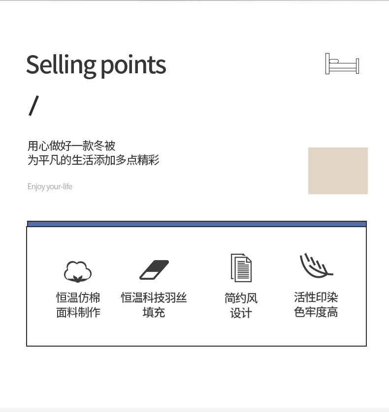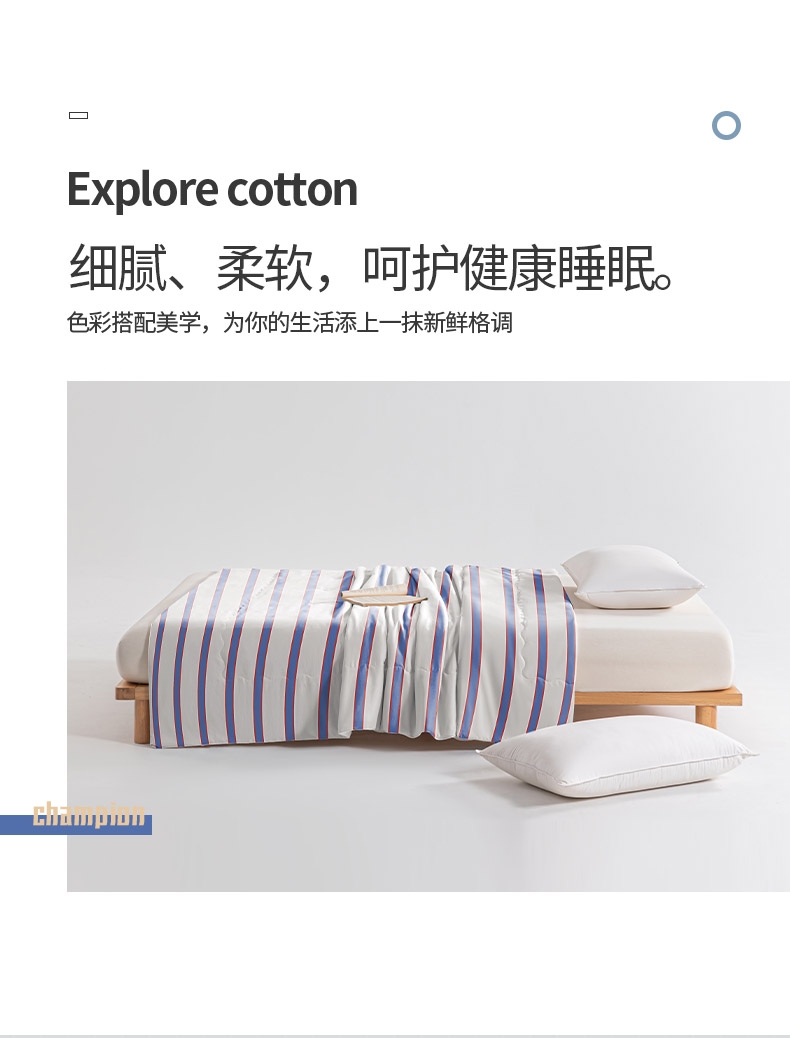 恒温仿棉面料,亲肤细腻,肌肤感知自然柔软力。;优质整张恒温科技羽丝棉填充。;精细工艺,用心细节,高品质代表。