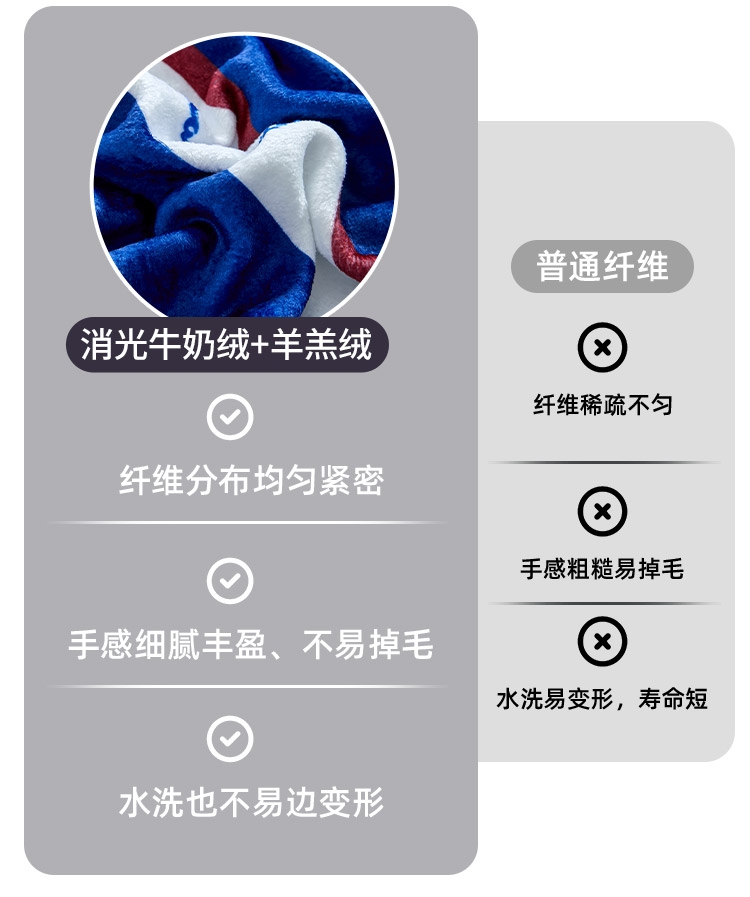 A面亲肤牛奶绒面料,细腻,厚实但却轻盈,纯度高,; B面高克重羊羔绒面料,柔软,洁白,触感更好。 ;完美搭配,精细做工,精品代表。
