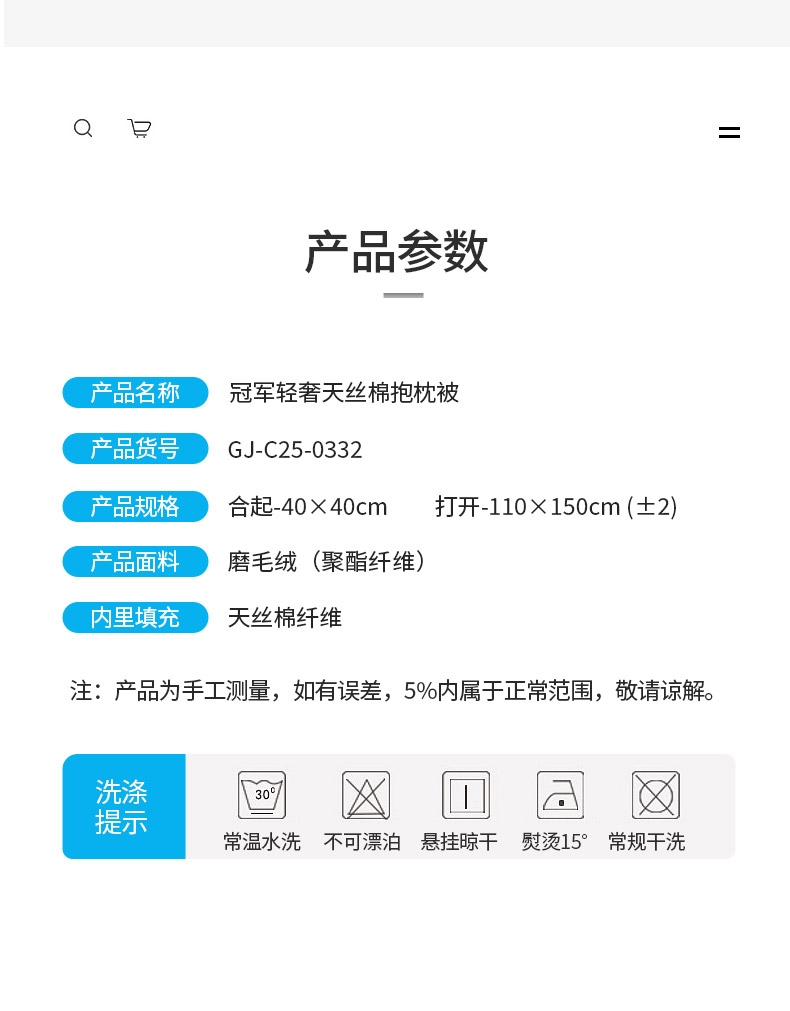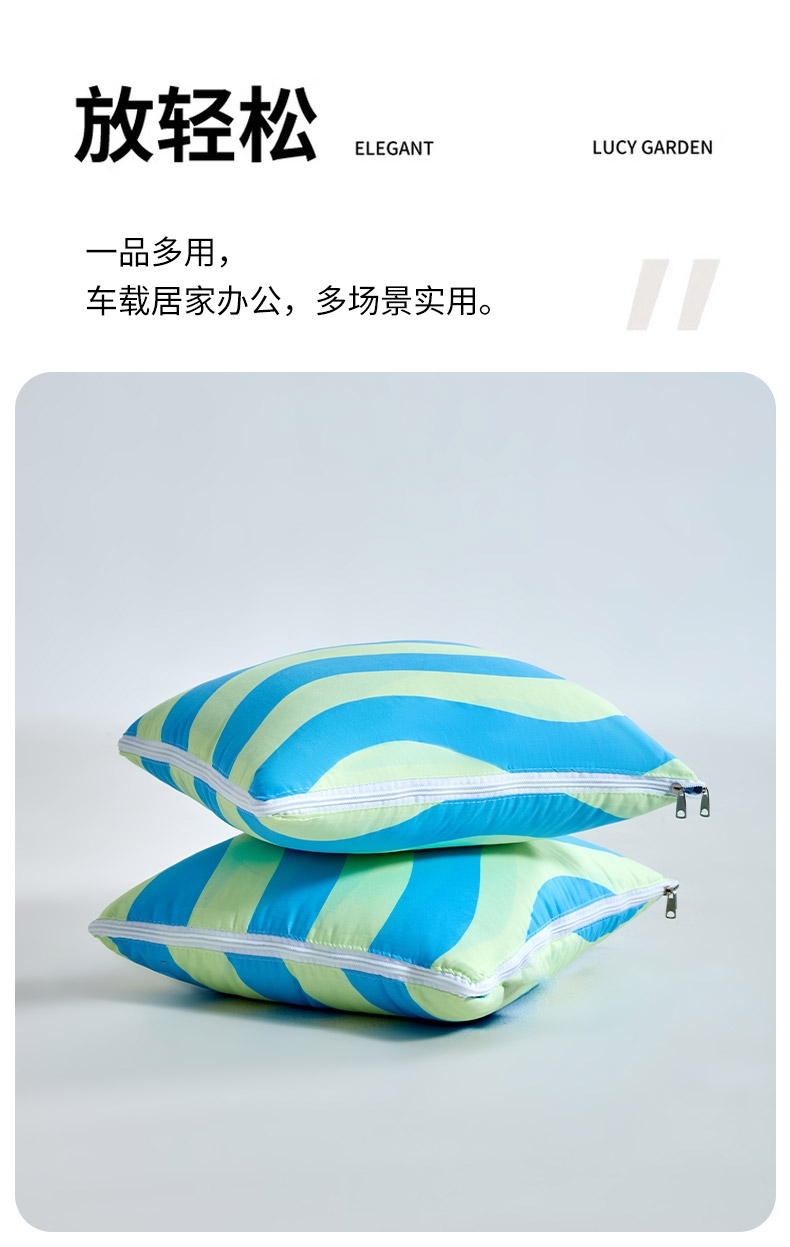 磨毛绒面料,天丝棉填充,手感顺滑。;打开是被子,合起是抱枕,一款多用,居家车载必备。;精细工艺,用心细节,高品质代表。