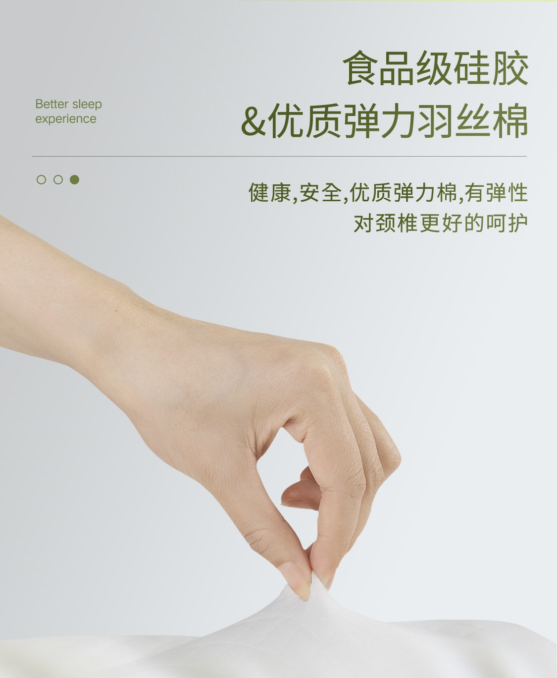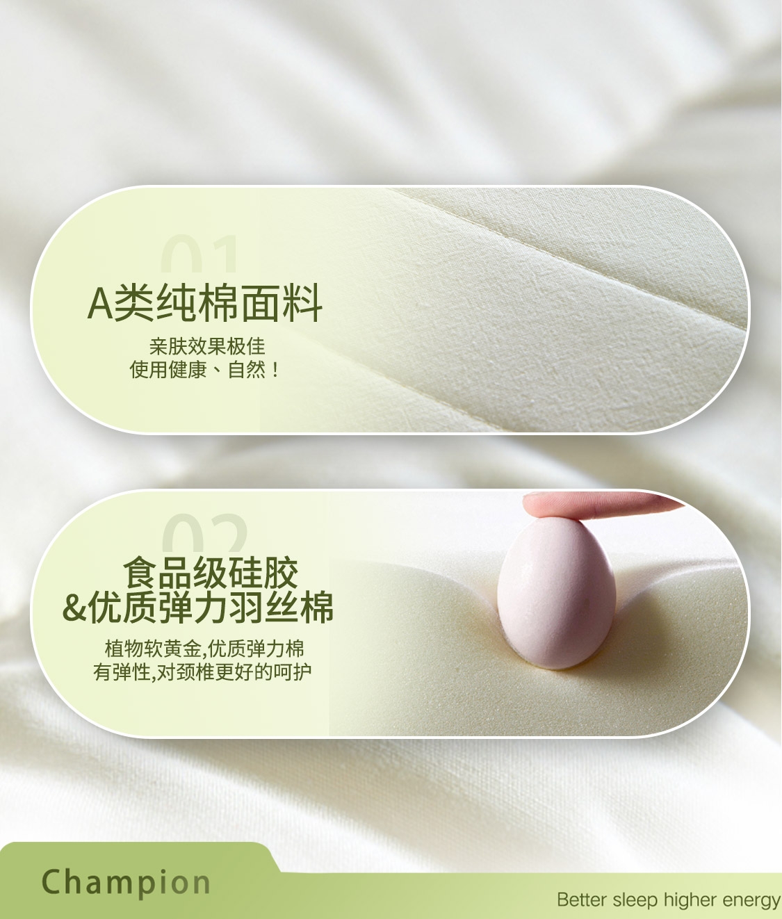 A类纯棉面料,健康,自然,使用更舒适。;食品级硅胶&优质弹力羽丝棉填充。;精细工艺,用心细节,高品质代表。