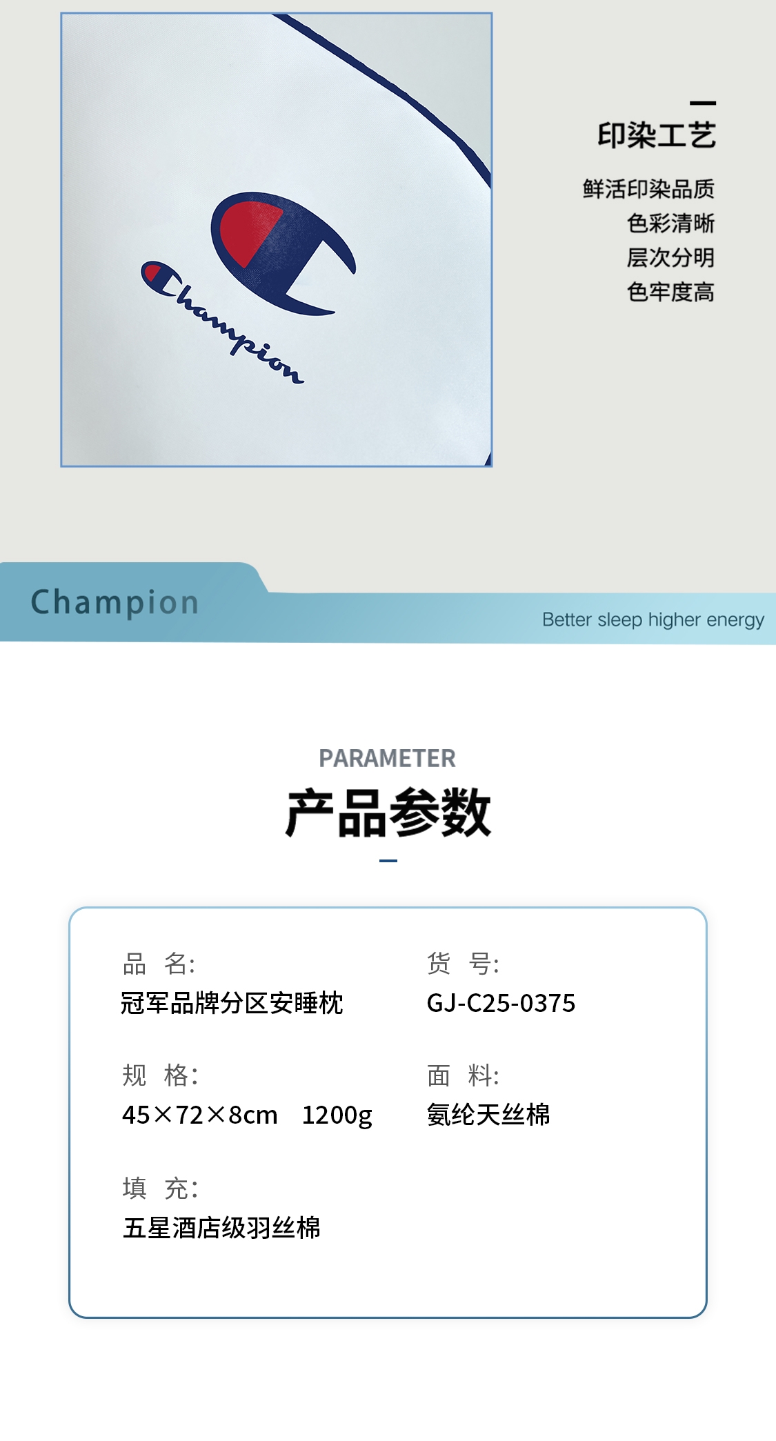 冠军(Champion) 品牌分区安睡枕单只装GJ-C25-0375