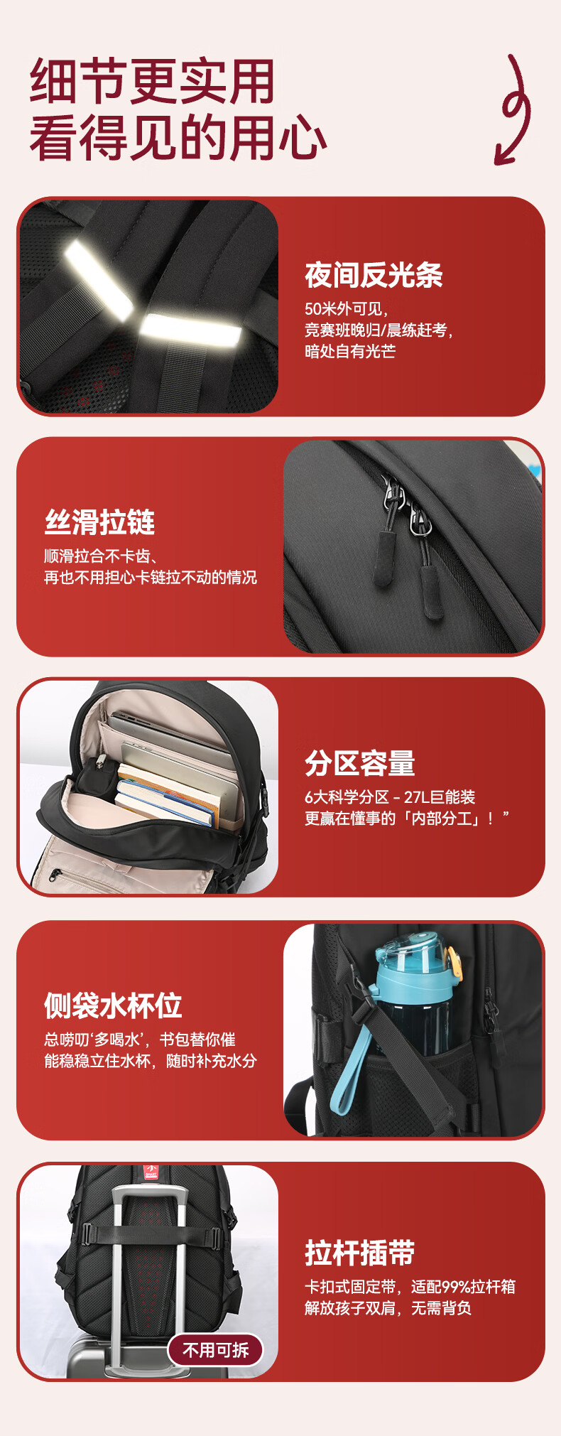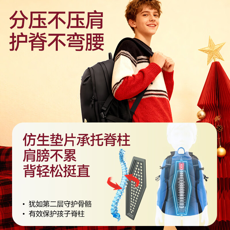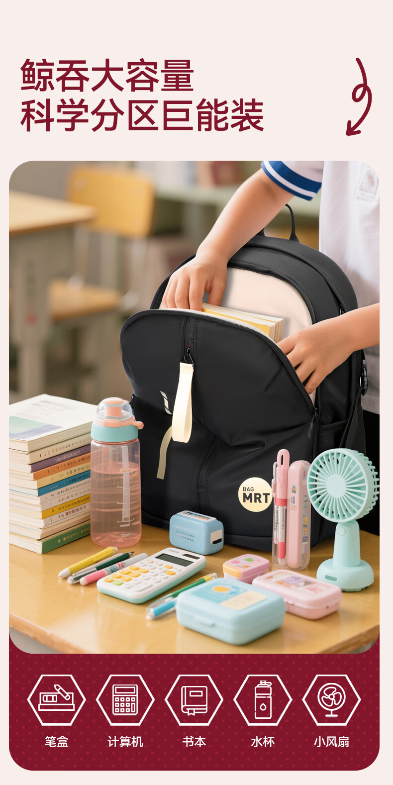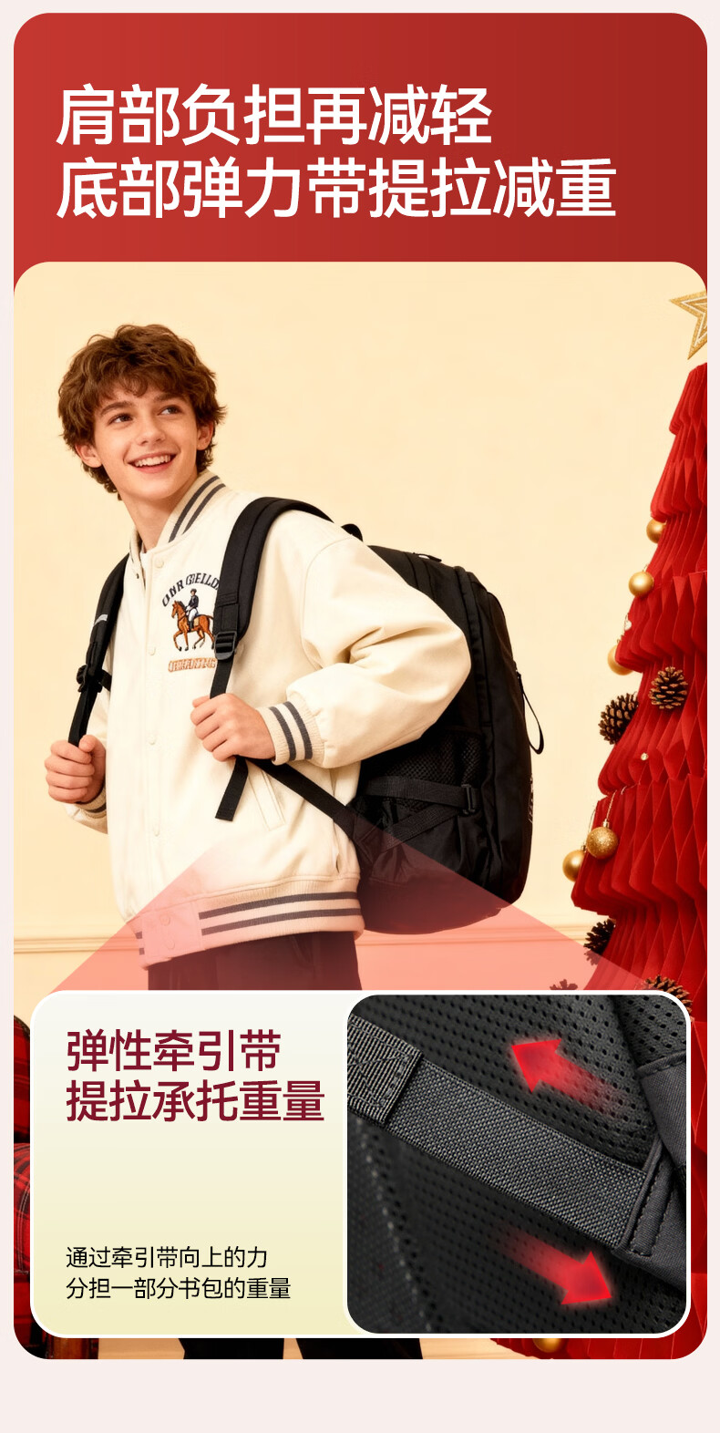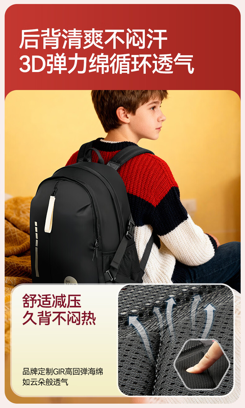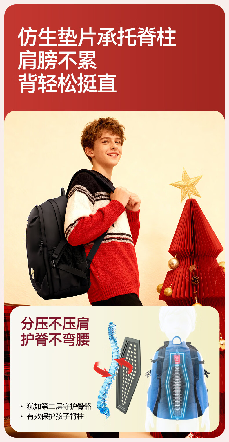 分压不压肩,护脊不弯腰;不止去上学,也能去户外;鲸吞大容量,科学分区巨能装