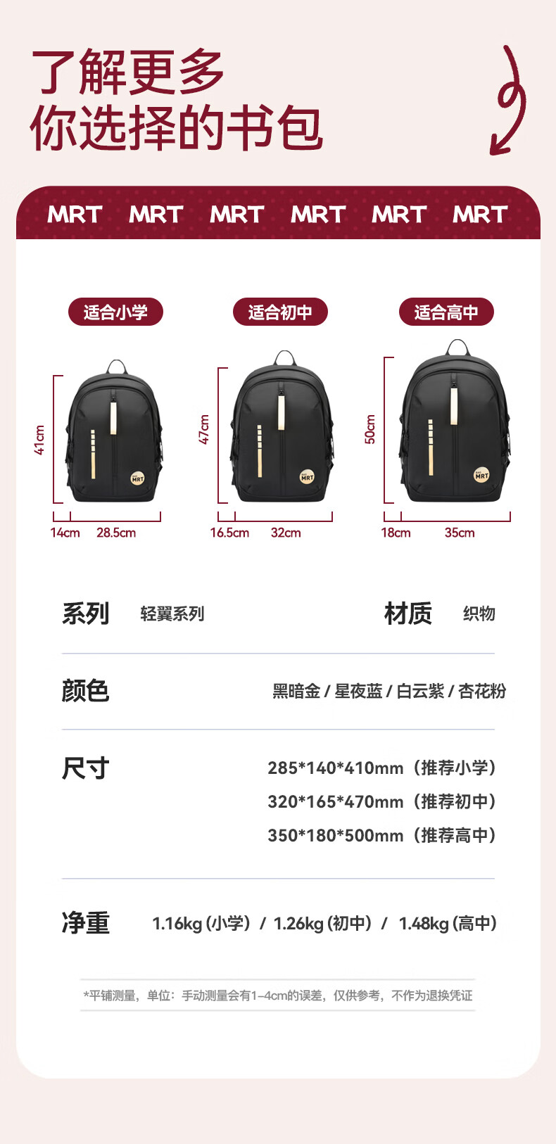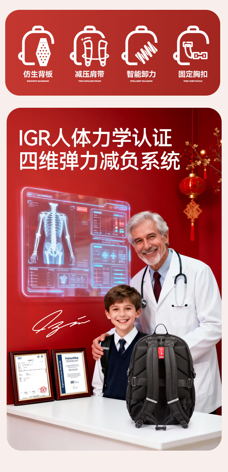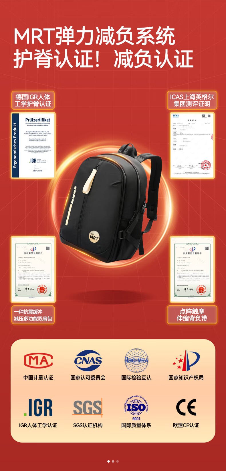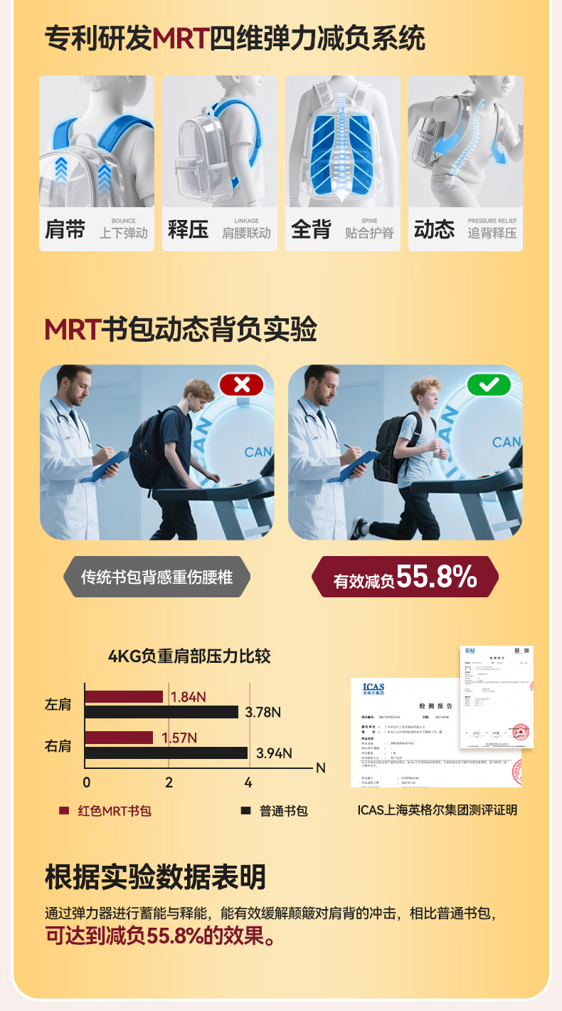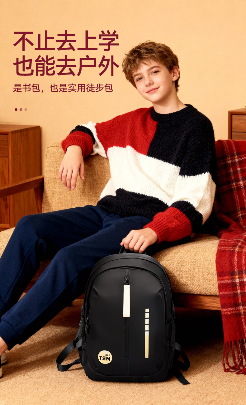 分压不压肩,护脊不弯腰;不止去上学,也能去户外;鲸吞大容量,科学分区巨能装