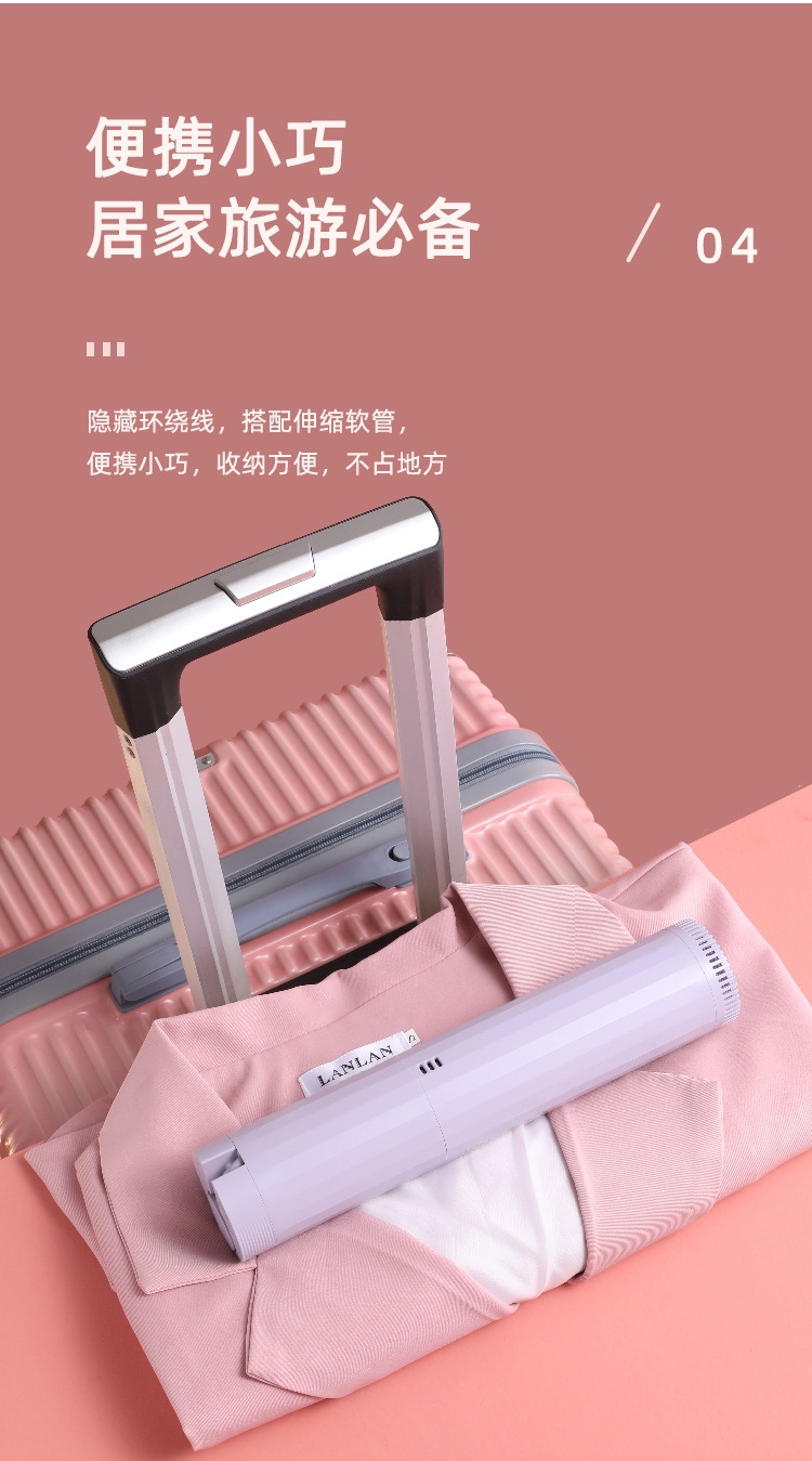 放进行李箱不占地,随时熨平衣物褶皱,保持整洁形象;小巧体积完美适配宿舍狭小环境,解决衣物护理难题;长条造型轻便易携,差旅时不增加行李重量