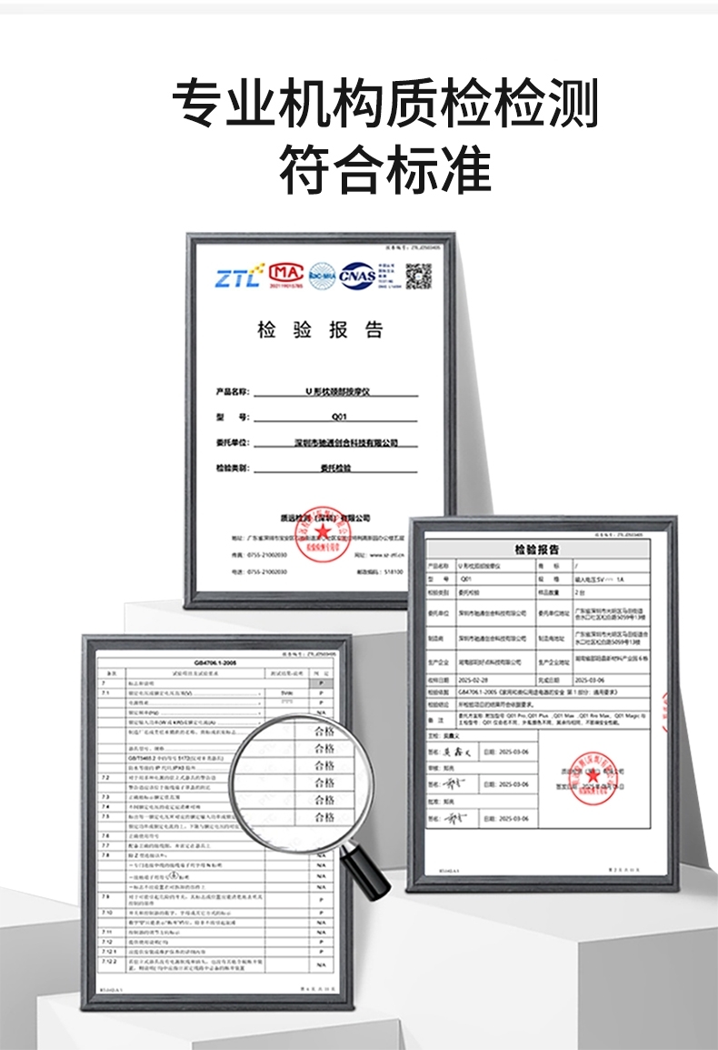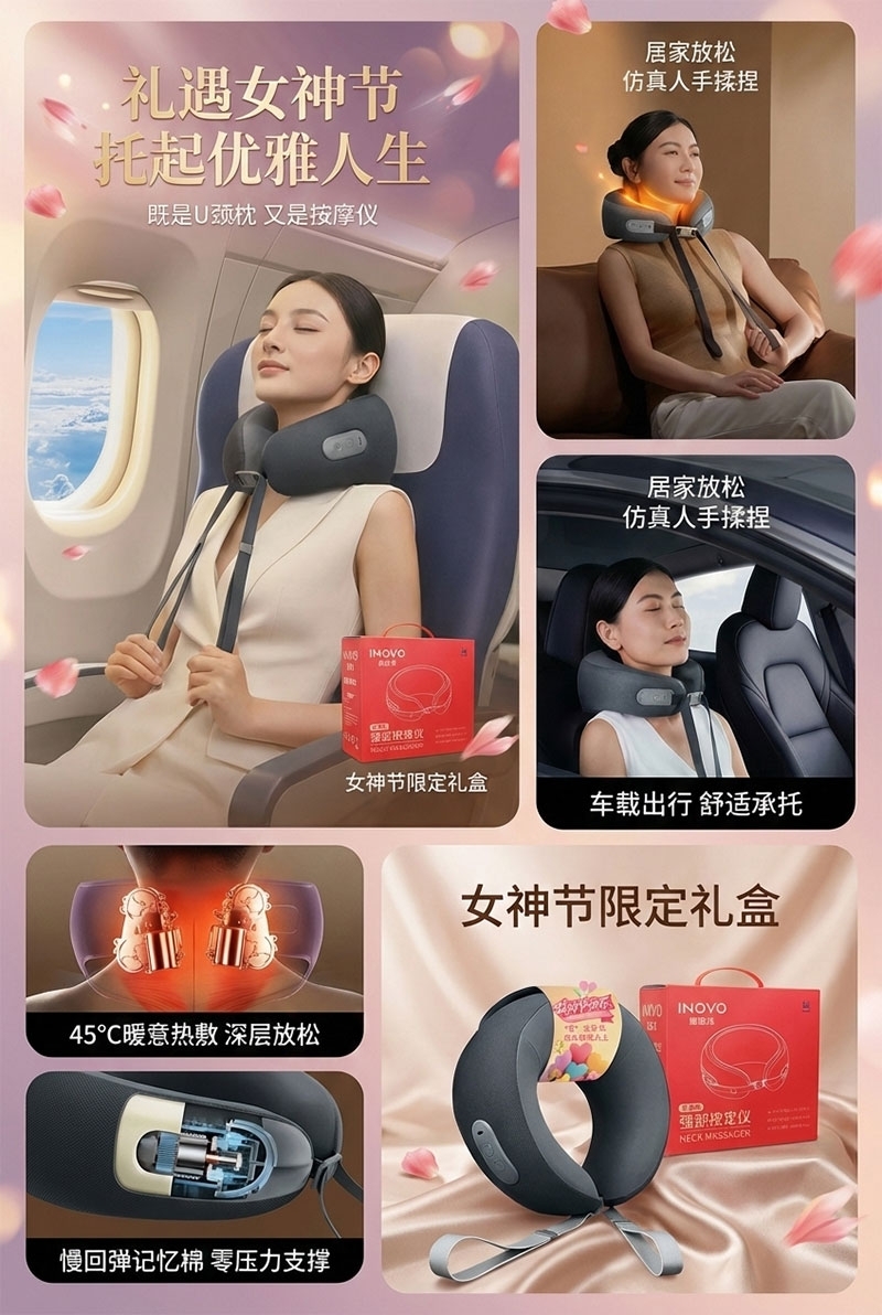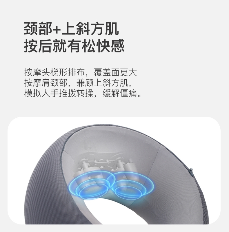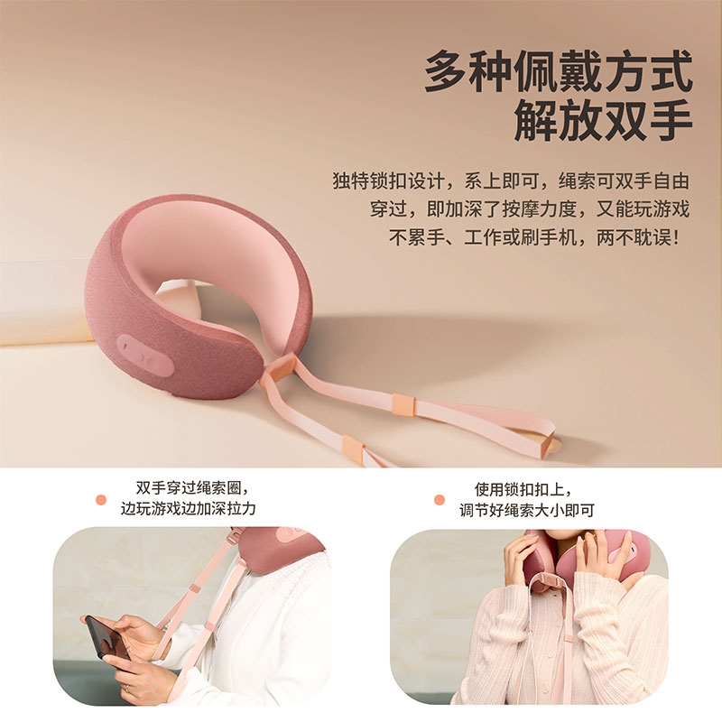 仿真人双头按摩手感 强电机高配; 360°环颈支撑 高密度回弹记忆棉;C口便携可充电 智能定时15分钟模式