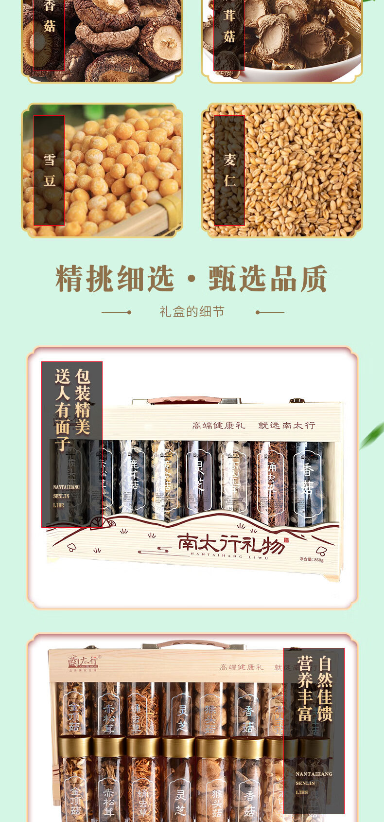 高端木盒全透窗;外观高端 送人有面;10种山珍大组合