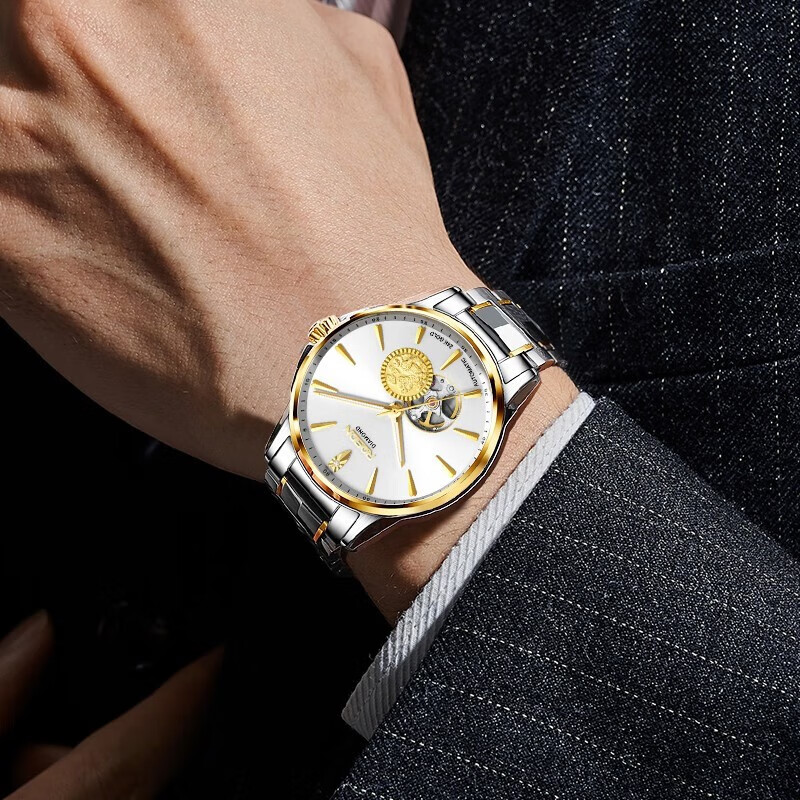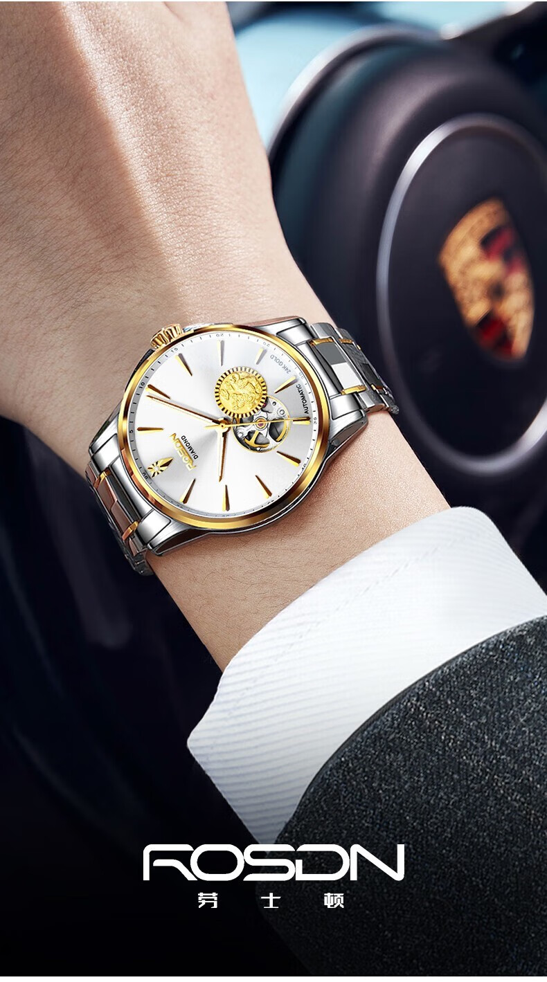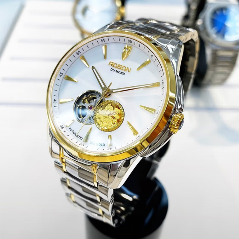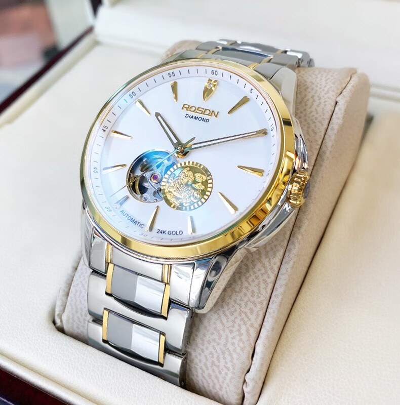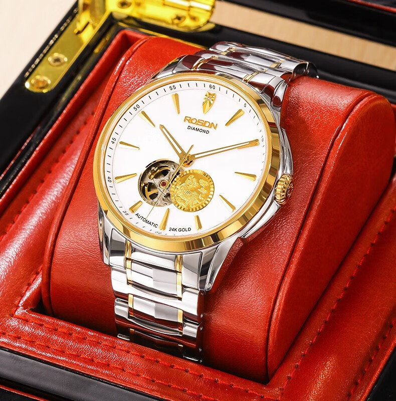 劳士顿 镂空机械表白面钢带男款G2197