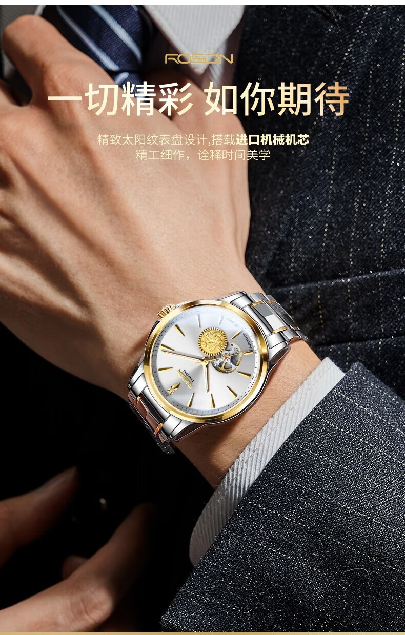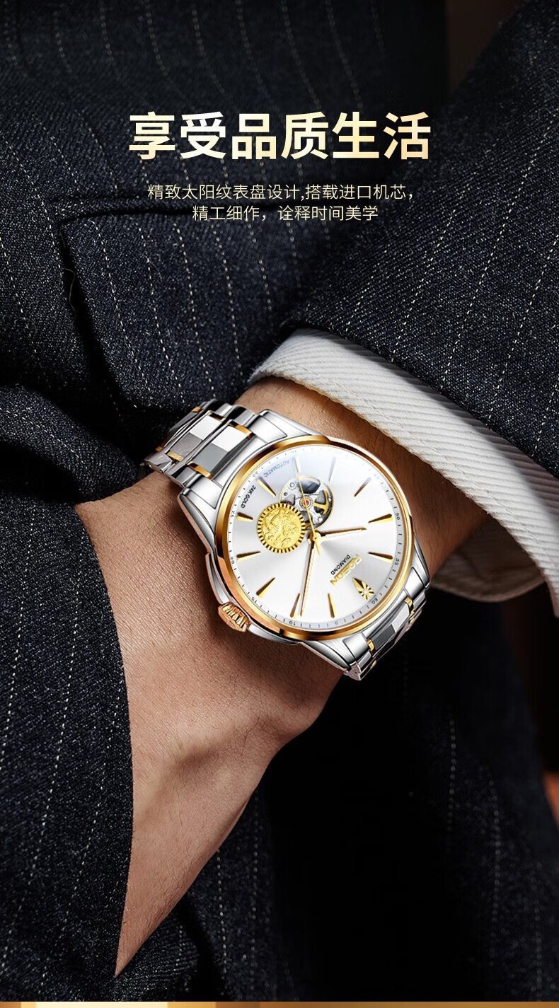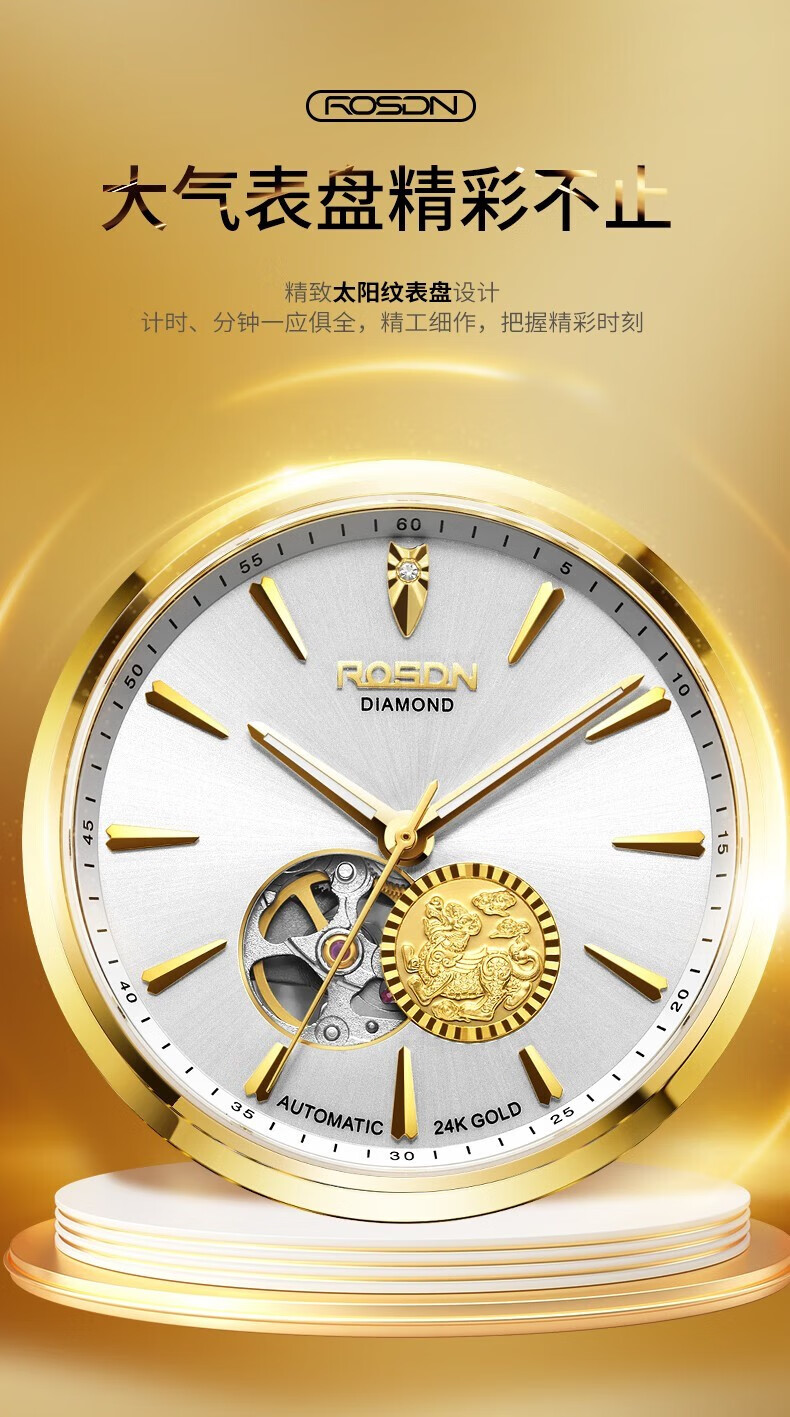 精致太阳纹表盘设计;搭载进口机械机芯;精工细作,诠释时间美学
