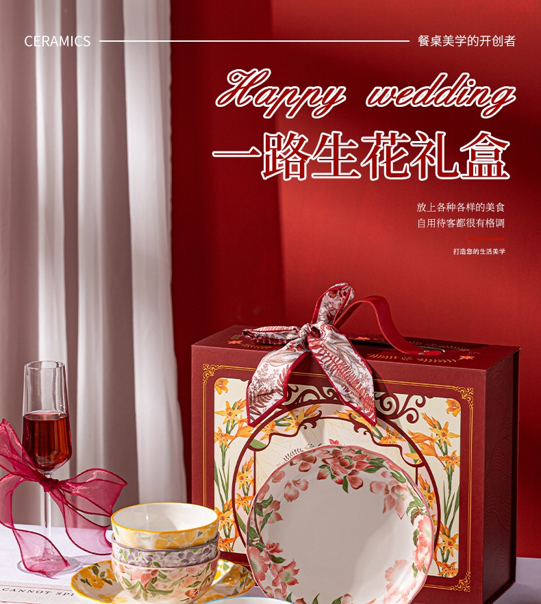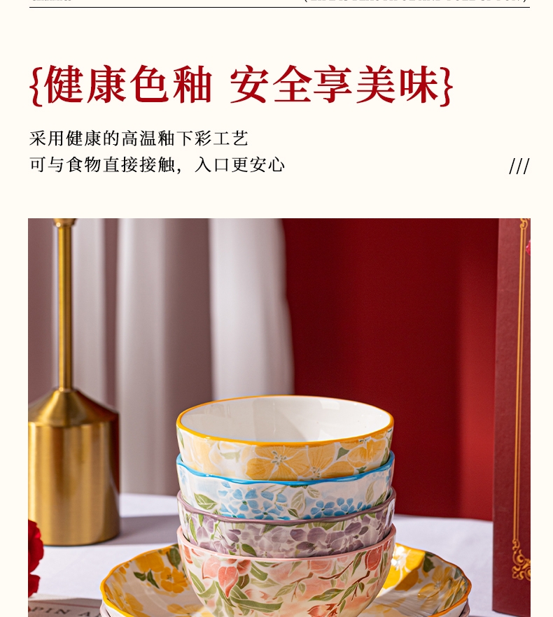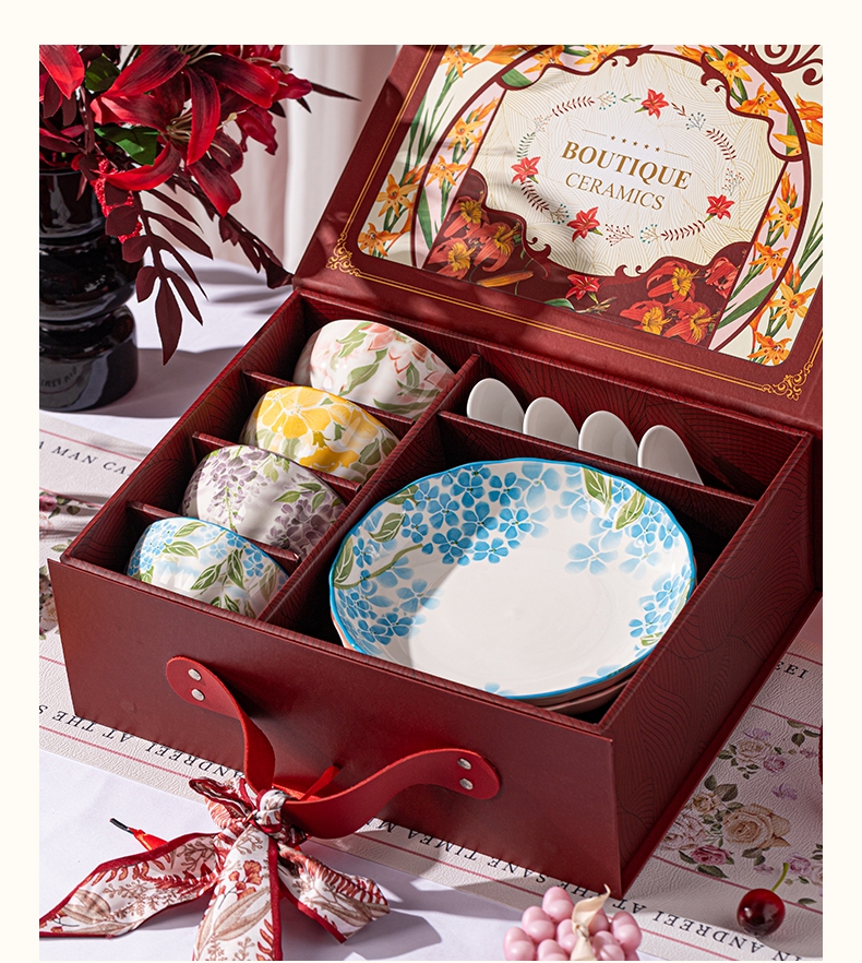 釉下彩绘工艺,瓷质细腻,美观易清洗;精美图案,颜值在线;精美礼盒装,送礼也不失体面