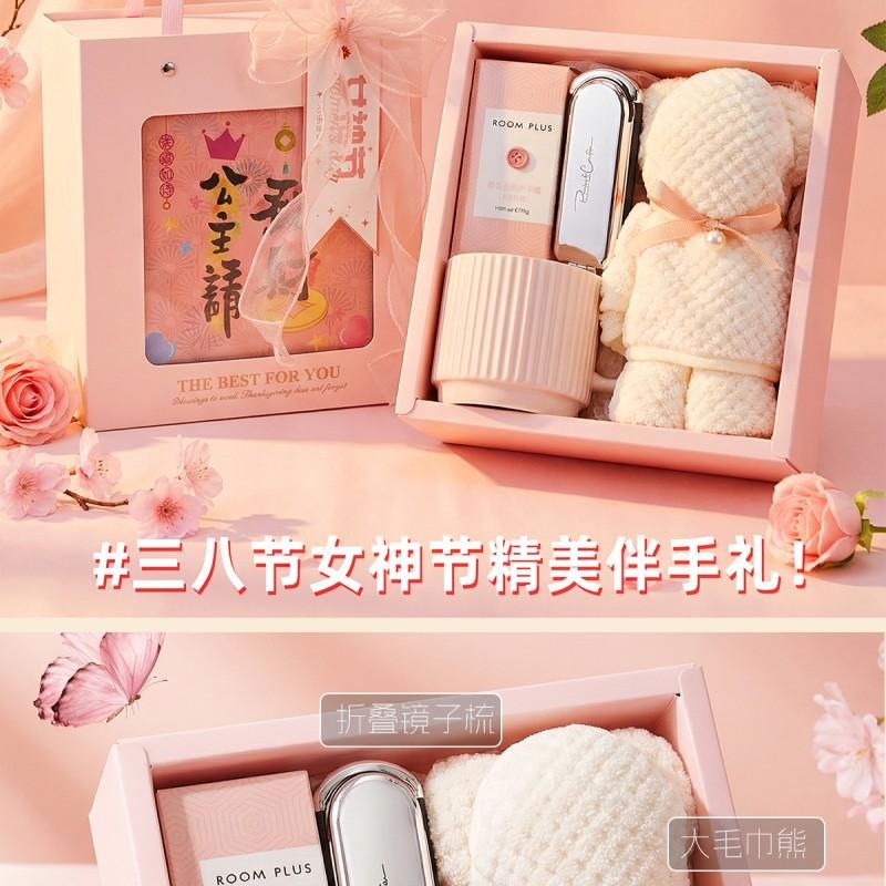组合:陶瓷主人杯*1、镜子气囊头梳*1、ROOM PIUS护手霜30g*1、菠萝格纹理创意小熊毛巾75*34CM*1